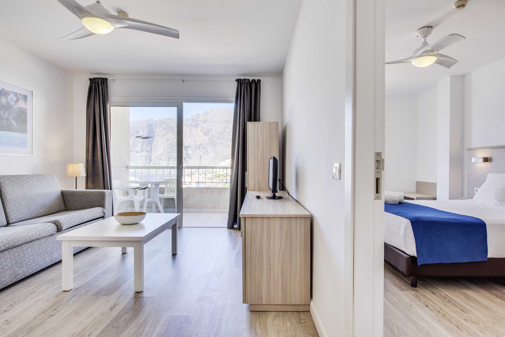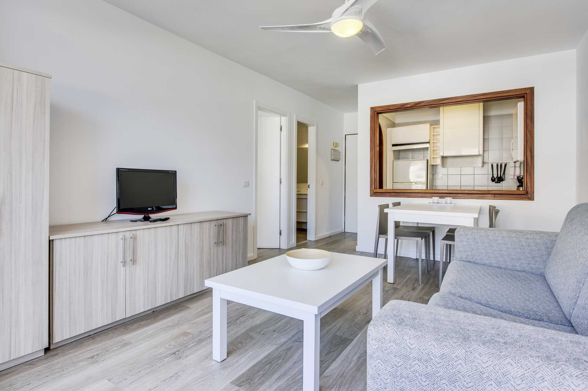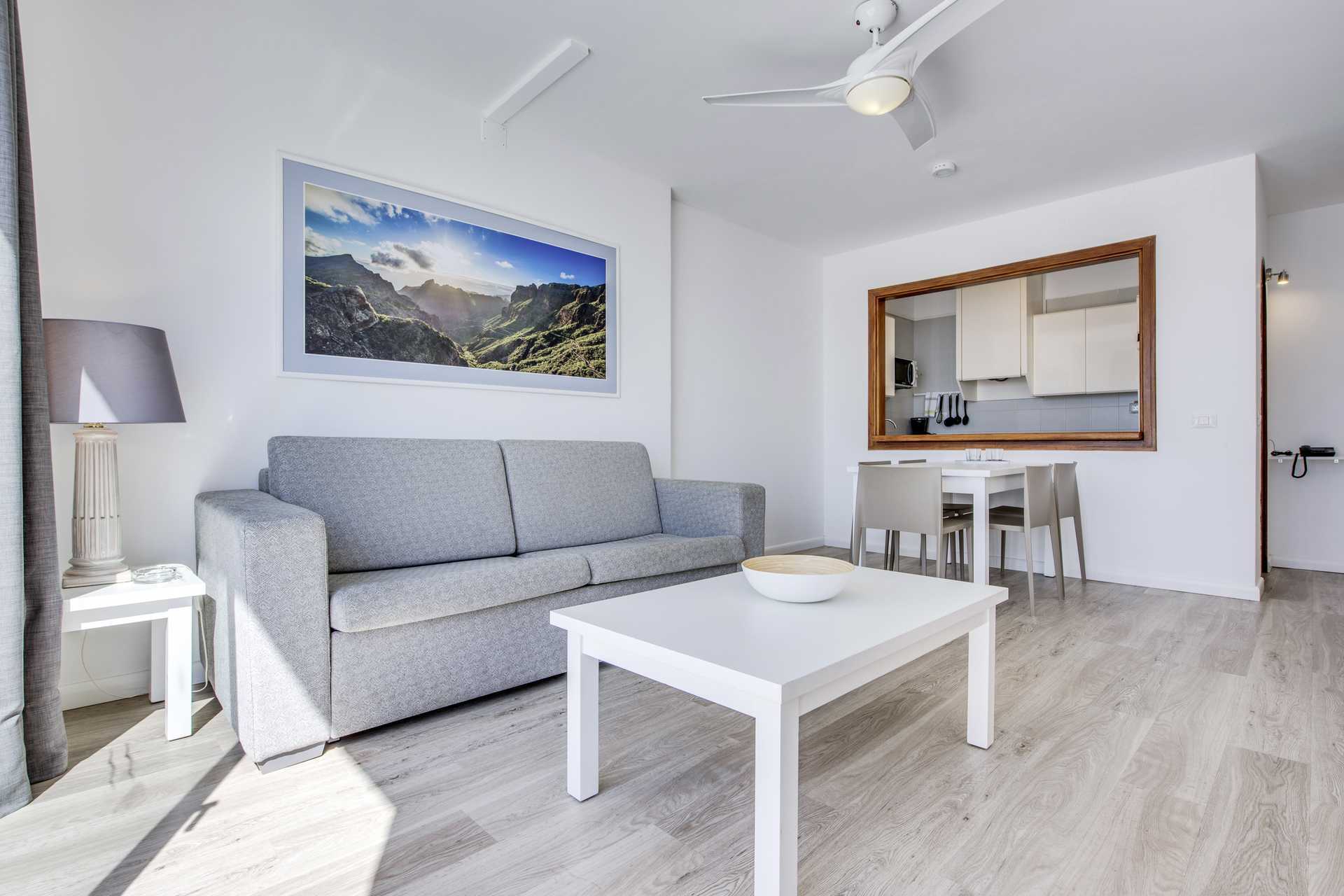 Toromsleilighet med balkong, noen med begrenset havutsikt. Leilighetene varierer i størrelse og planløsning. Et soverom og stue med minikjøkken. En dobbeltseng. Mulig med ekstrasenger i sovesofa. Minikjøkken med kokeplater, mikrobølgeovn, kjøleskap, kaffetrakter, vannkoker, brødrister og enkel kjøkkenutstyr. Wifi og safe mot avgift. Takvifte i begge rom. TV. Strykejern og strykebrett. Hårføner. Dusj og wc. Rengjøring 3 ggr/uke.