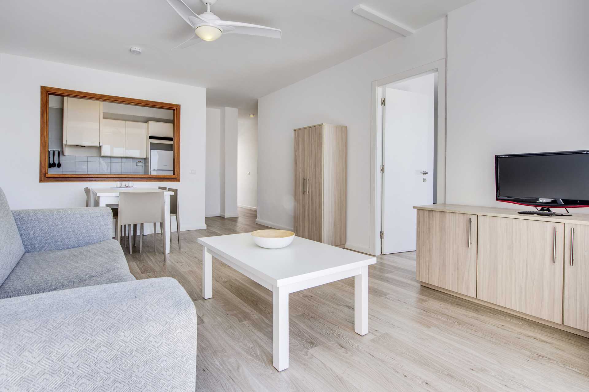 Treromsleilighet med balkong og begrenset havutsikt. Leilighetene varierer i størrelse og planløsning. To soverom og stue med minikjøkken. Et soverom med dobbeltseng og et soverom med to enkeltsenger. Mulig med ekstrasenger i sovesofa. Minikjøkken med kokeplater, mikrobølgeovn, kjøleskap, kaffetrakter, vannkoker, brødrister og enkel kjøkkenutstyr. Wifi og safe mot avgift. Takvifter i hvert soverom. TV. Strykejern og strykebrett. Hårføner. Dusj og wc. Rengjøring 3 ggr/uke.