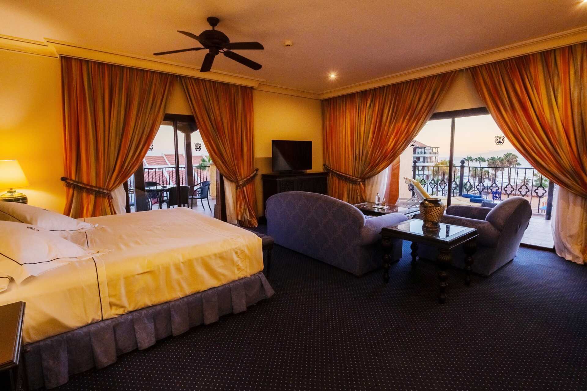 Juniorsuite med balkong eller terrasse og havutsikt. Soverom og stue i åpen planløsning. En dobbeltseng. Mulig med en ekstraseng i sovesofa. Wifi, luftkondisjonering og safe inkludert. Minibar. Nespresso kaffemaskin. Vegg-til-vegg-teppe Takvifte. TV med internasjonale kanaler og iHome-klokke og mobiltelefonlader. Badekåper og tøfler Hårføner. Baderomsartikler. Badekar eller dusj samt wc. Rengjøring 7 ggr/uke. Barn under 2 år regnes inn i maksantallet i rommet.