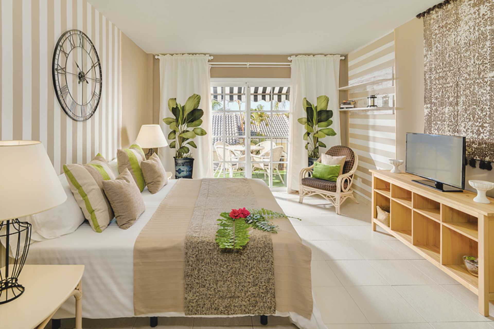 Toromsleilighet i etasje med balkong, noen med utsikt over golfbanen og noen med bassengutsikt. Nede er det et soverom med takvifte og to enkeltsenger samt et bad med hårføner, badekar og wc. I øverste etasje er det kombinert stue med kjøkken og balkong. Mulig med en ekstraseng i sovesofa. Kjøkken med kjøleskap, kokeplater, stekeovn, mikrobølgeovn, kaffetrakter, vannkoker og enkelt kjøkkenutstyr. Luftkondisjonering og wifi inkludert. Safe mot avgift. TV. Rengjøring 7 ggr/uke.