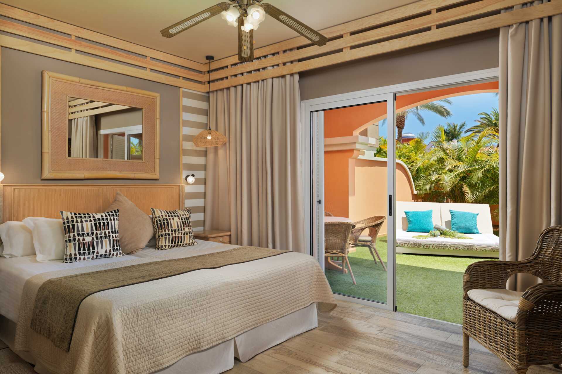 Hvis du vil ta en tur inn til byen, ligger sentrum av Playa de las Americas omtrent 2 kilometer unna. Like ved hotellet ligger Tenerifes store badeland Siam Park, der hele familien kan ha det gøy sammen blant basseng og fartsfylte vannsklier. For bading i havet er stranden Playa de las Vistas i Los Cristianos den nærmeste, cirka 2,5 kilometer fra hotellet. Den enkleste måten å komme seg hit er med hotellbussen som går mandag til lørdag.