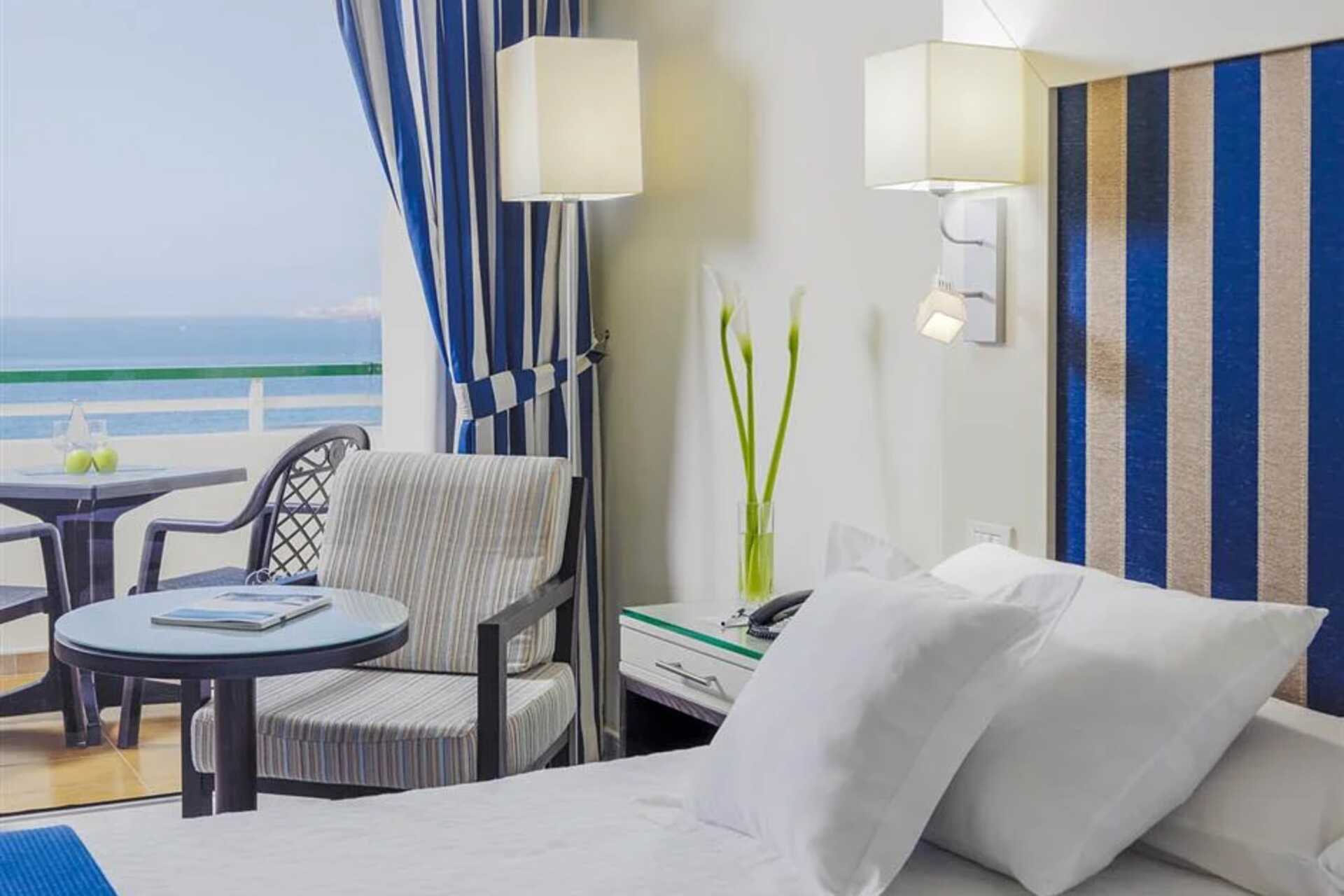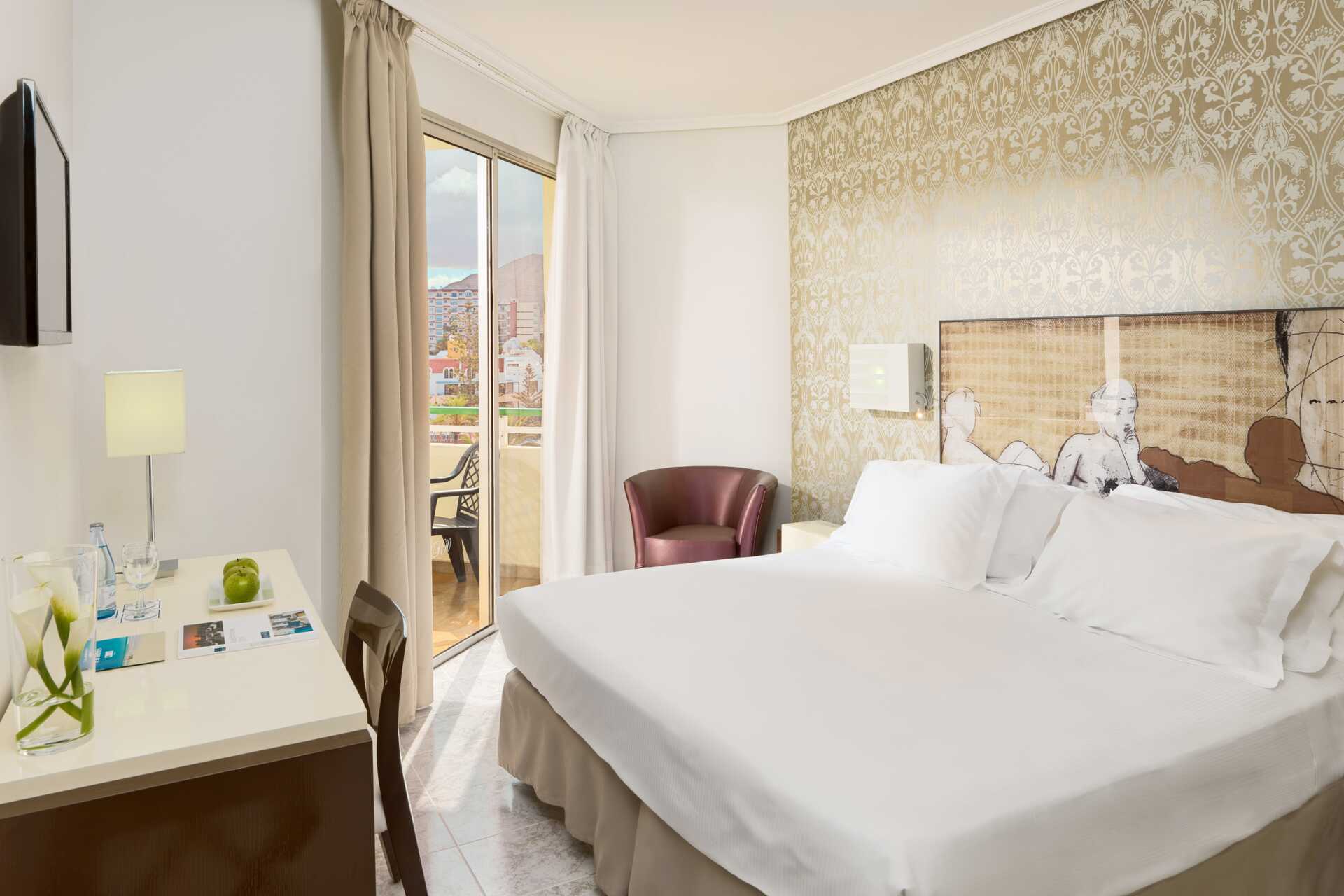 I H10 Las Palmeras store hage ligger et stort og fint bassengområde med tre basseng. Her kan du, mellom badene, finne en plass under en palme med favorittboka for å nyte og senere spise middagen mens sola går ned i havet. Halvpensjon er inkludert, men det blir ekstra komfortabelt med All Inclusive. For deg som vil trene er det både et treningsrom og noen tennisbaner.