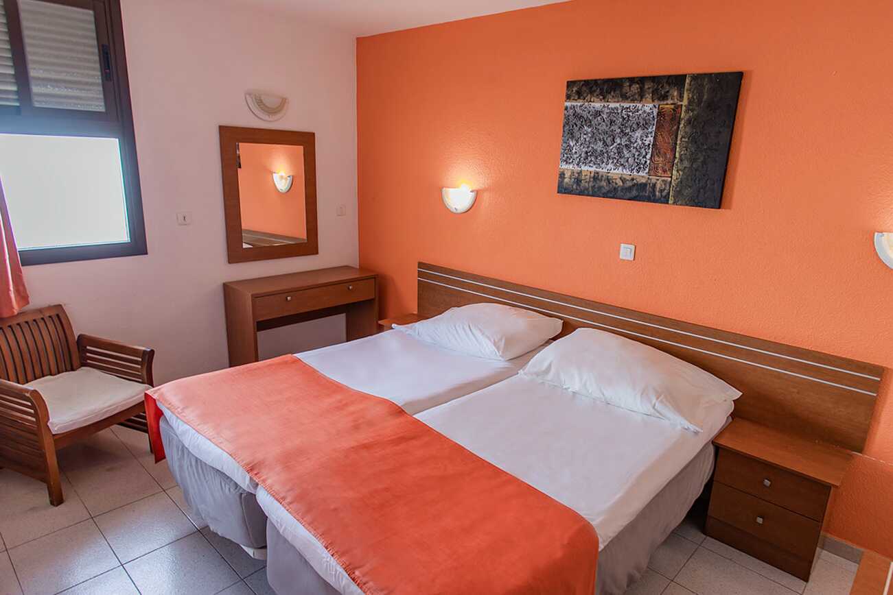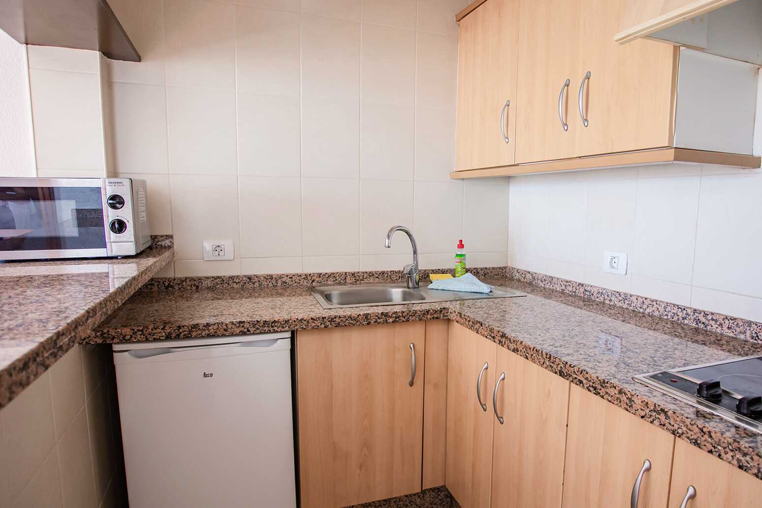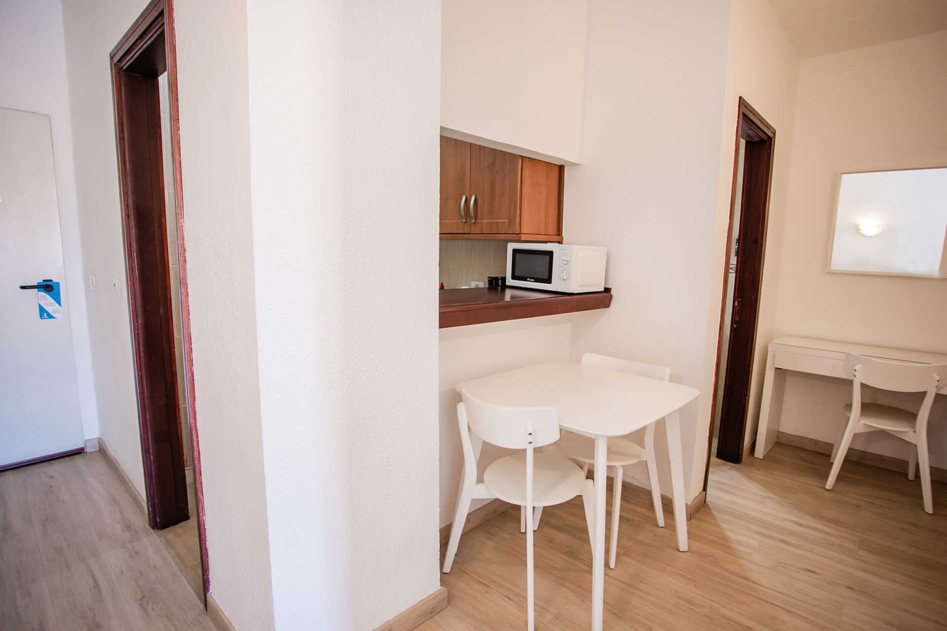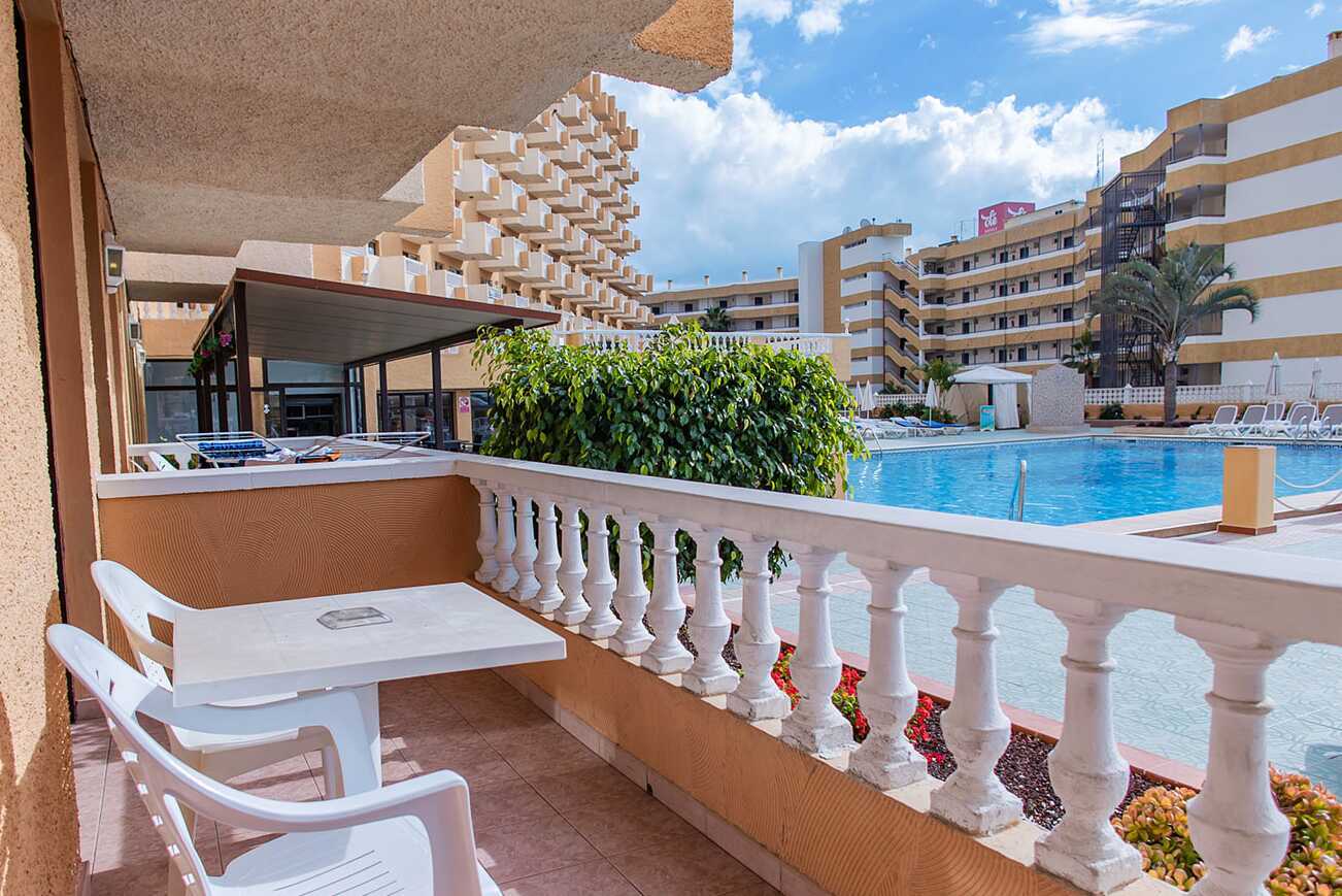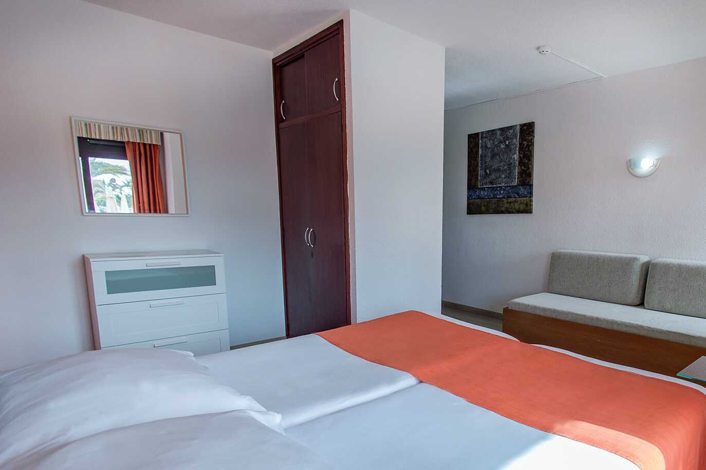 Toromsleilighet med balkong, noen med bassengutsikt eller begrenset havutsikt. Et soverom og en stue med minikjøkken. To enkeltsenger. Mulig med en ekstraseng i sovesofa. Minikjøkken med kokeplater, kjøleskap, mikrobølgeovn, vannkoker og enkelt kjøkkenutstyr. Wifi inkludert. Safe mot avgift. TV. Badekar og wc. Rengjøring 5 ggr/uke.