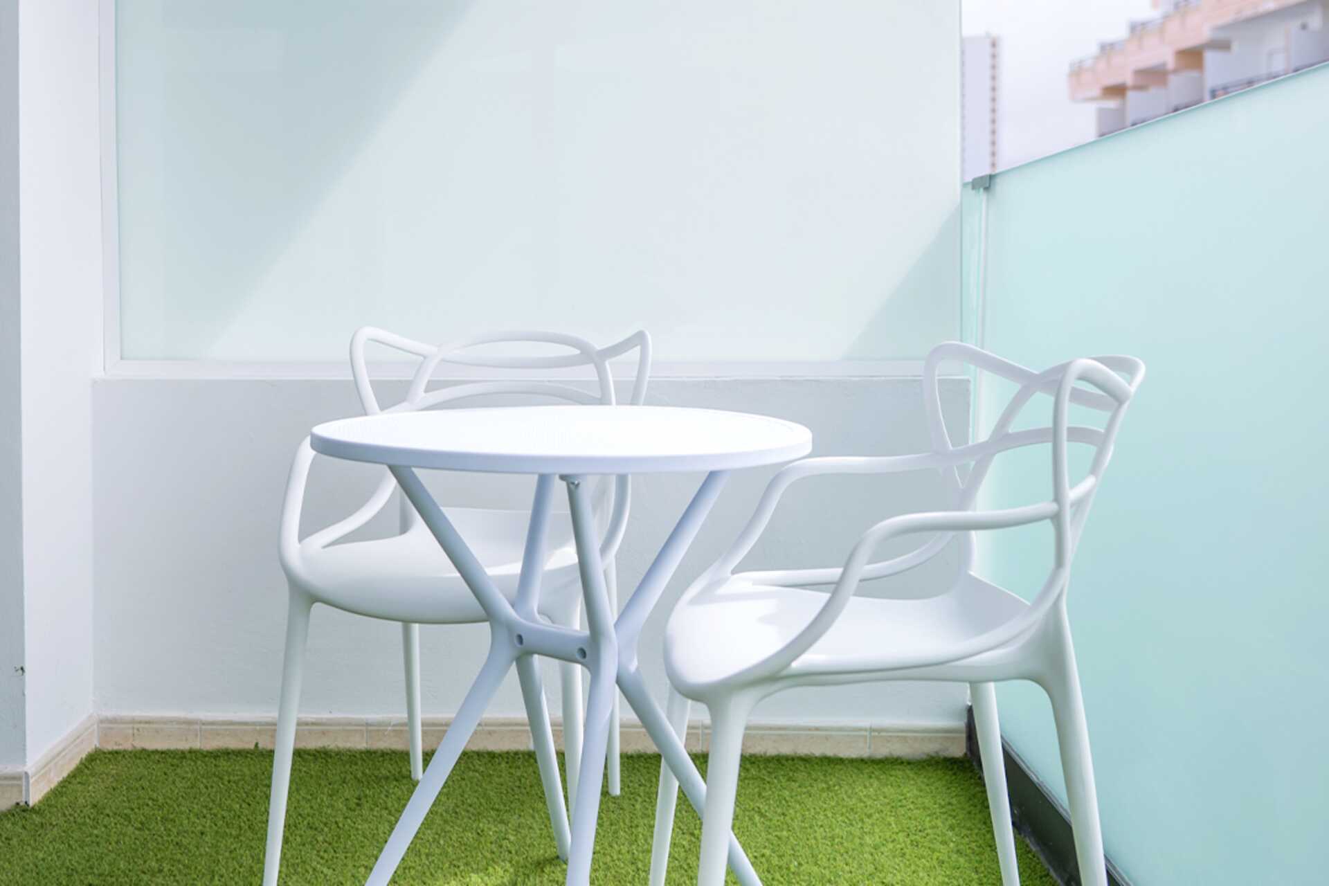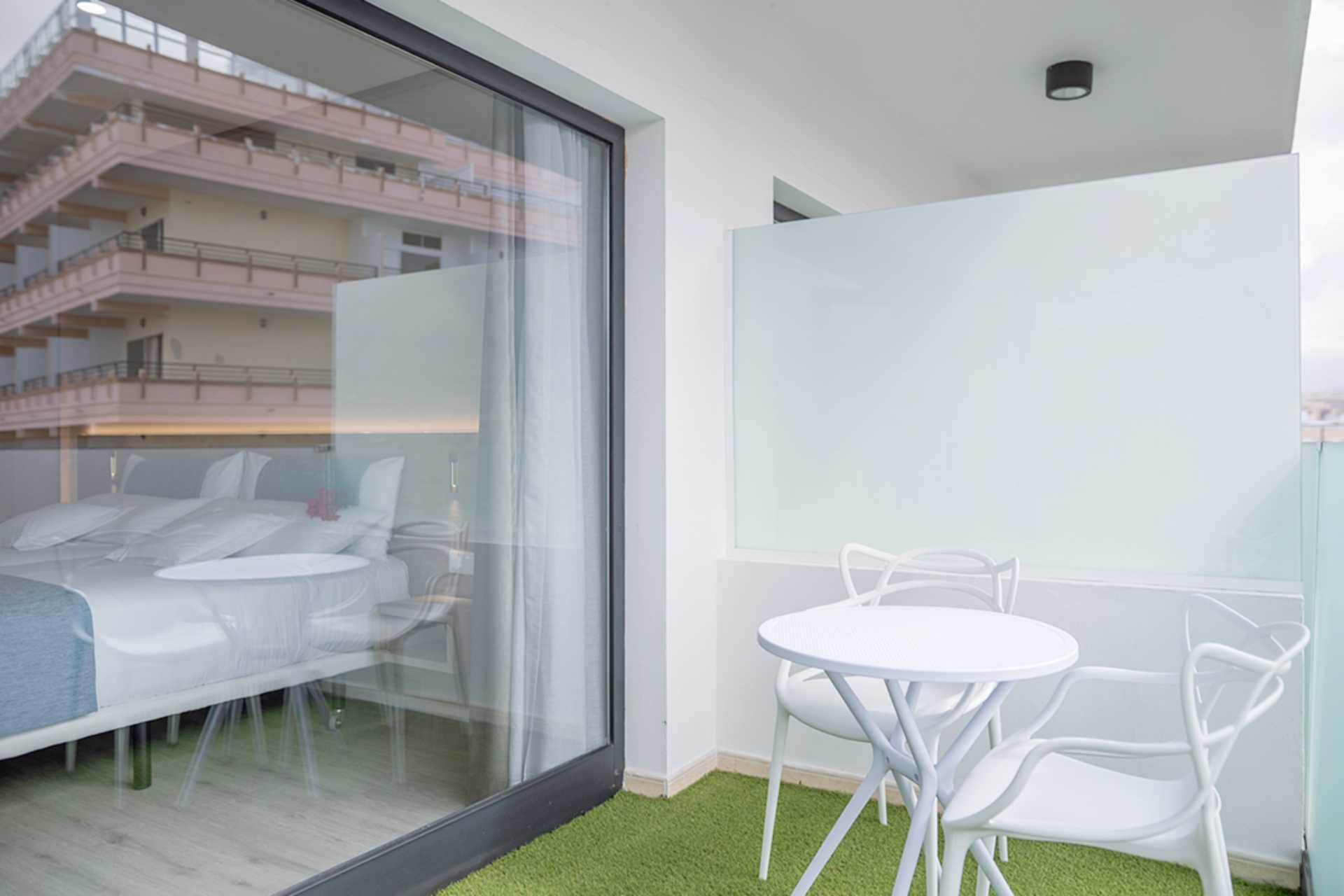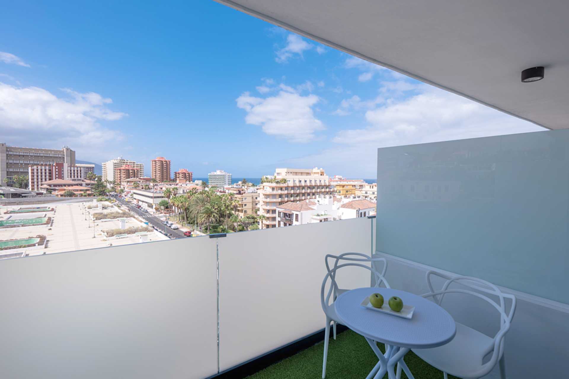 Dobbeltrom med balkong og utsikt mot Teide. To enkeltsenger. Wifi, luftkondisjonering og safe inkludert. Minibar. Vannkoker. TV. Hårføner. Åpen planløsning til bad med frostede glassdører til dusj og wc. Rengjøring 7 ggr/uke.