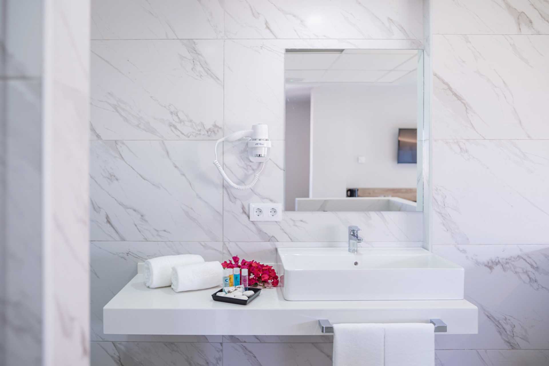 Dobbeltrom med balkong og havutsikt. To enkeltsenger. Wifi, luftkondisjonering og safe inkludert. Minibar. Vannkoker. TV. Hårføner. Åpen planløsning til bad med frostede glassdører til dusj og wc. Rengjøring 7 ggr/uke.