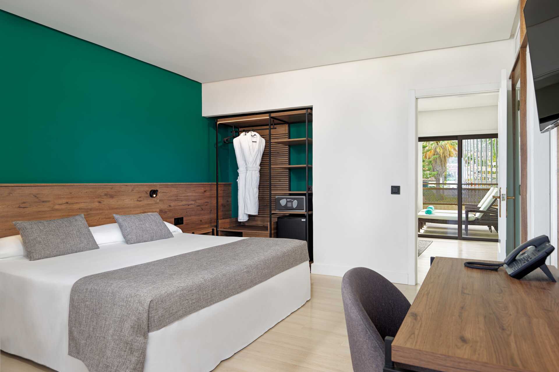 Juniorsuite med balkong. En dobbeltseng eller to enkeltsenger. Mulig med ekstrasenger i sovesofa. Wifi og luftkondisjonering inkludert. Safe mot avgift. Kjøleskap. TV. Tøfler. Hårføner. Baderom med dusj og wc. Rengjøring 5 ggr/uke.