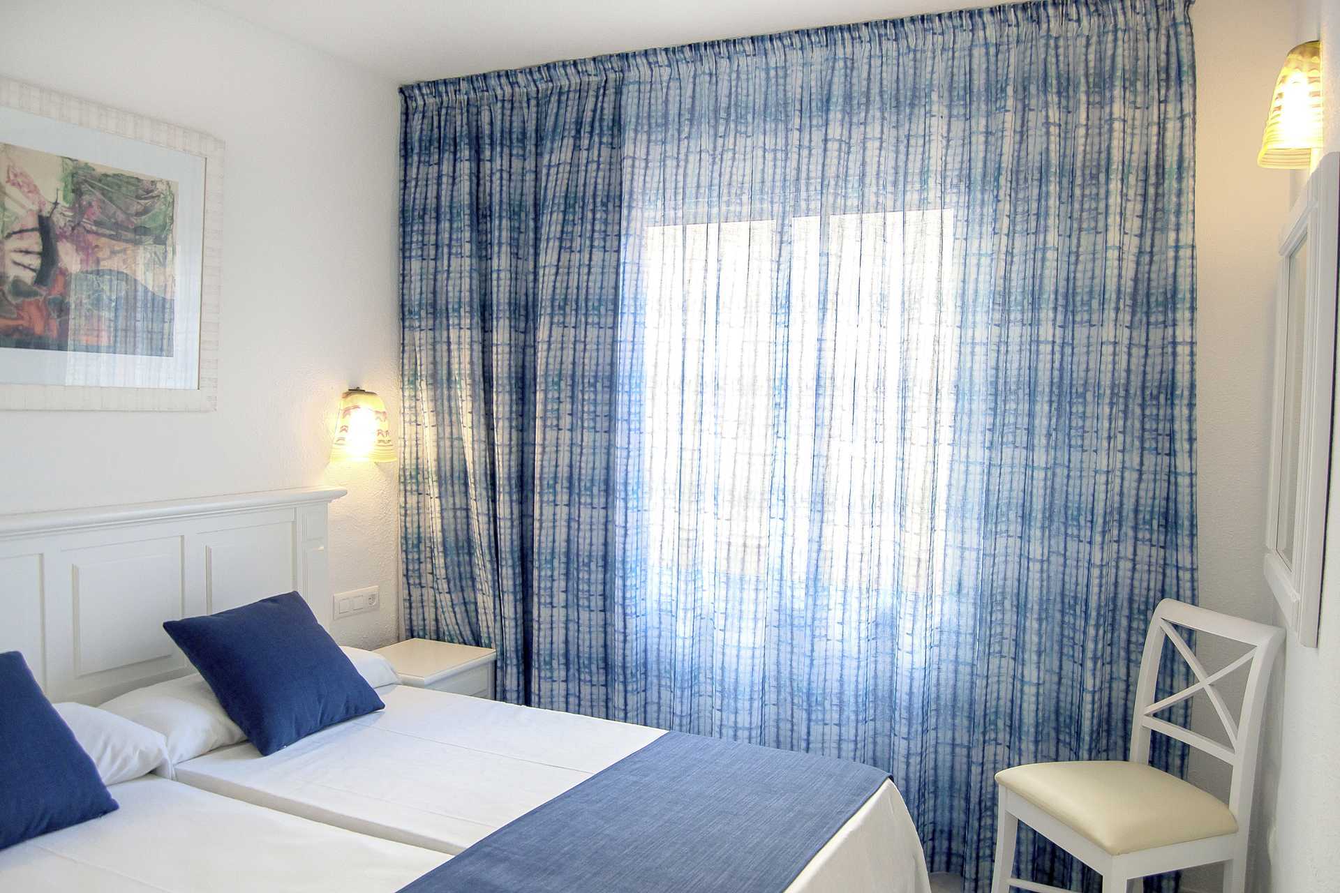 Toromsleilighet med balkong eller terrasse. Et soverom og stue med minikjøkken. To enkeltsenger. Mulig med ekstrasenger i sovesofa. Minikjøkken med kokeplater, kjøleskap, mikrobølgeovn, brødrister, kaffetrakter og enkel kjøkkenutstyr. Luftkondisjonering (kun i stuen) er inkludert. Wifi og safe mot avgift. TV. Hårføner, bad med dusj og wc. Rengjøring 5 ggr/uke. Barn under 2 år regnes inn i maksantallet i leiligheten.