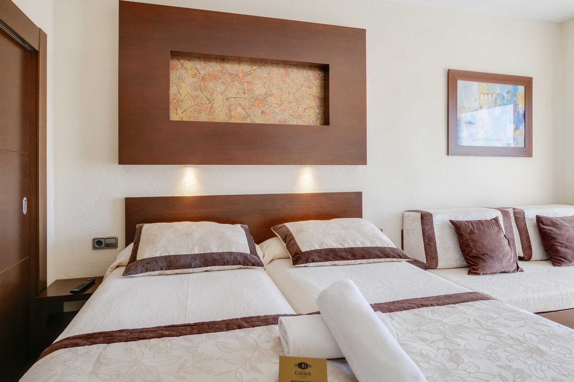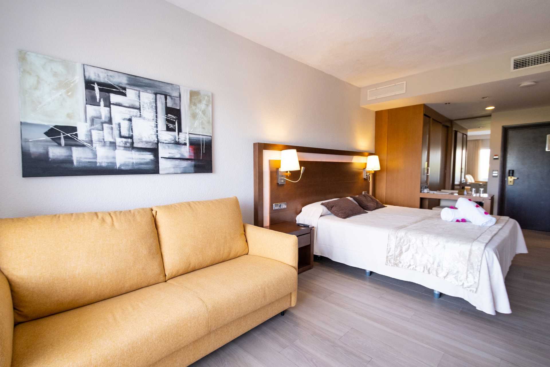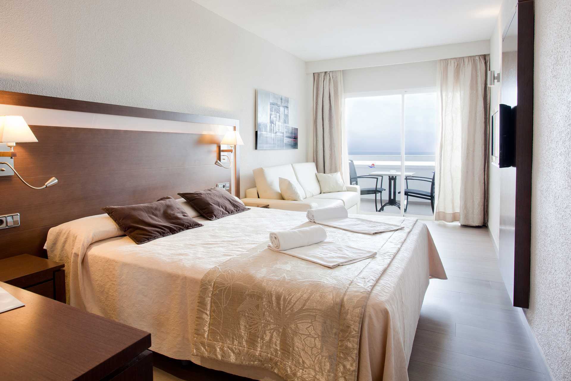 Juniorsuite med balkong eller terrasse, noen med begrenset havutsikt. Juniorsuitene ligger øverst i bygningen i 5. etasje. En dobbeltseng. Mulig med ekstrasenger i sovesofa. Wifi og luftkondisjonering er inkludert. Safe mot avgift. Minibar som fylles ved ankomst, påfyll mot avgift. TV. Hårføner. Dusj og wc. Rengjøring 7 ggr/uke. Barn under 2 år regnes inn i maksantallet i rommet.