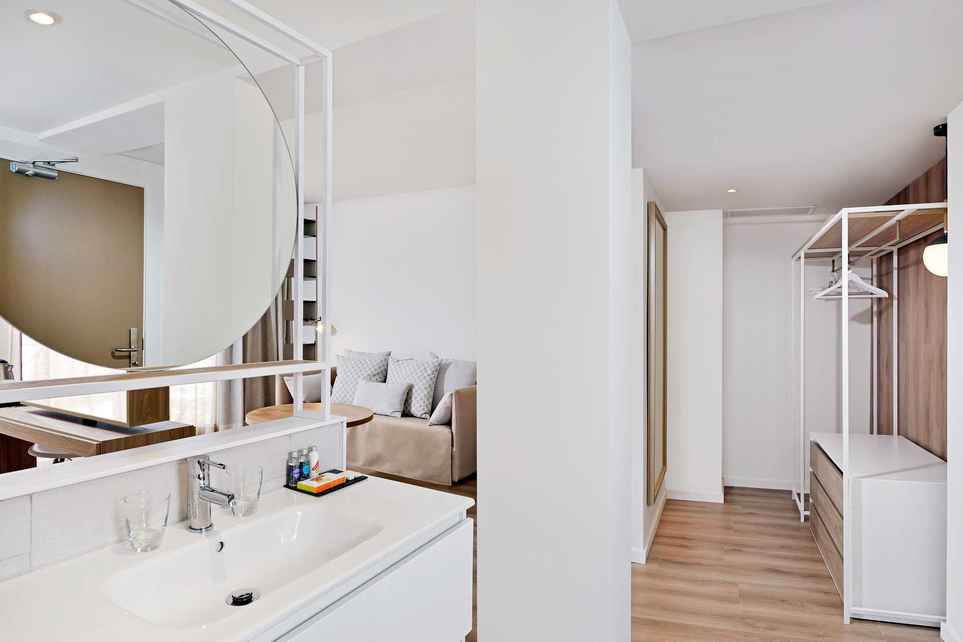 Juniorsuite med balkong eller terrasse, noen med havutsikt. Et soverom og en stuedel. Mulig med ekstraseng for to barn på sovesofa. Luftkondisjonering og wifi inkludert. Safe mot avgift. Lite kjøleskap, som kan fylles som minibar på forespørsel, og er deretter mot avgift. Mikrobølgeovn og vannkoker samt kaffe og te. TV. Hårføner. Baderom med dusj og wc. Rengjøring 7 ggr/uke. Barn under 2 år regnes inn i maksantallet i rommet.