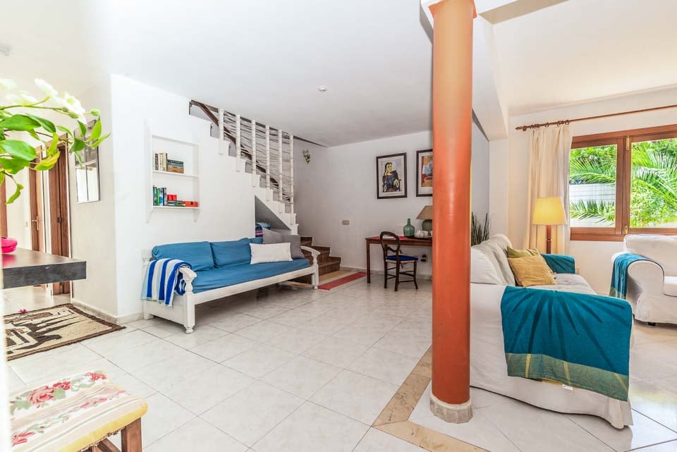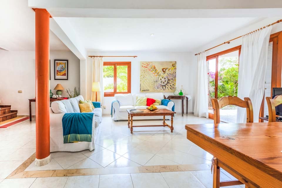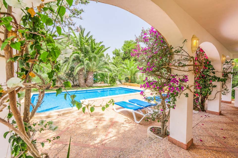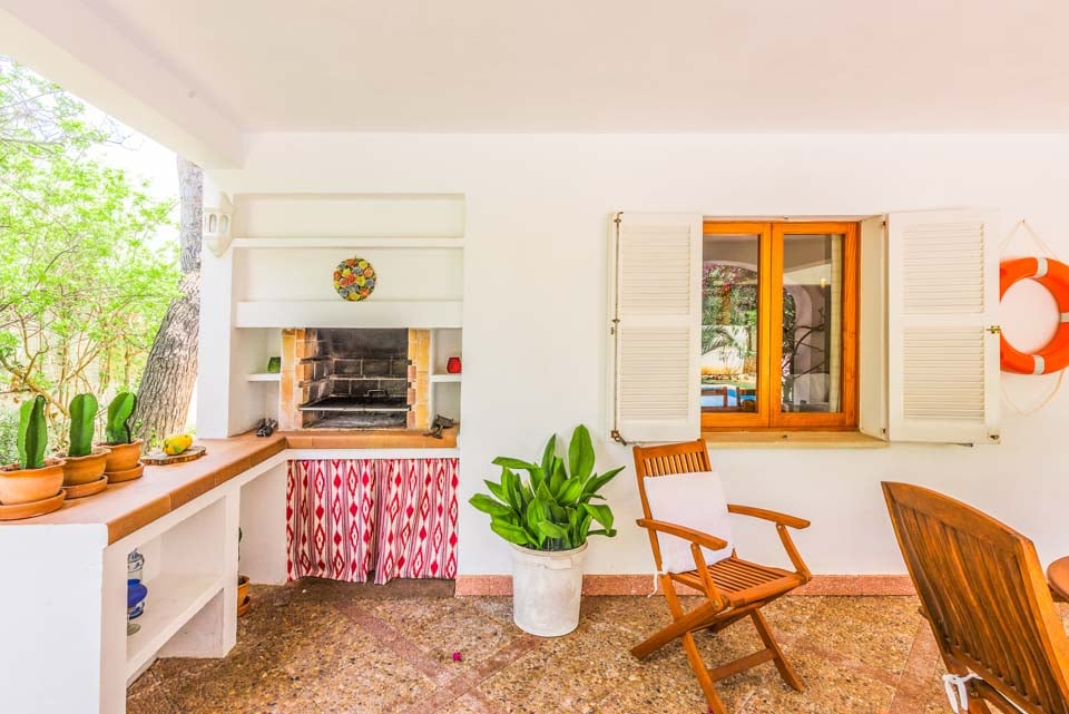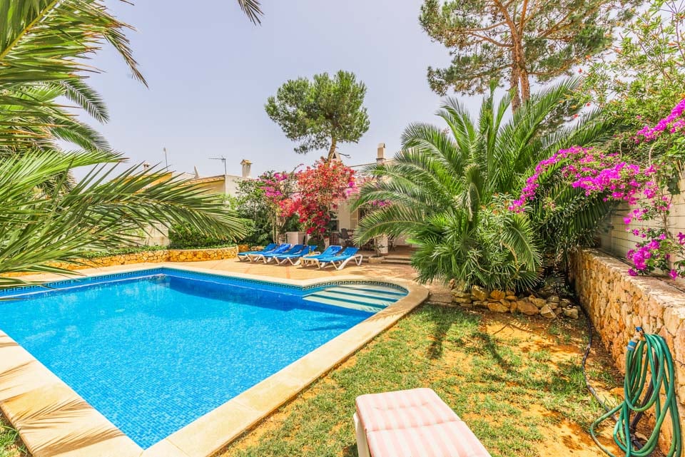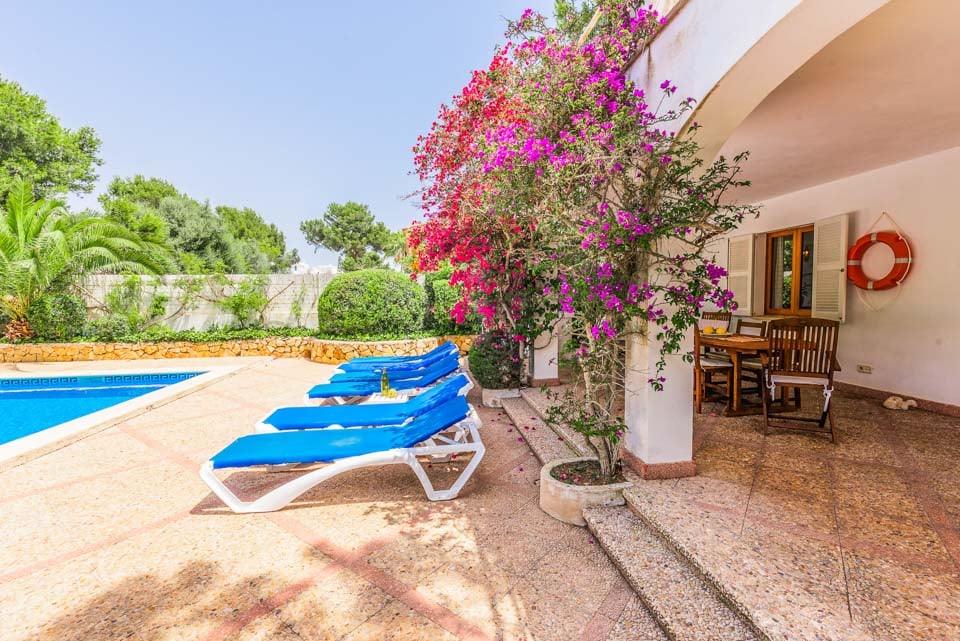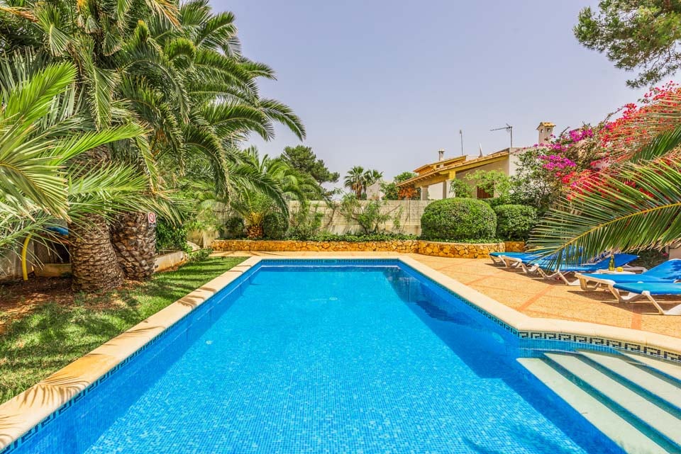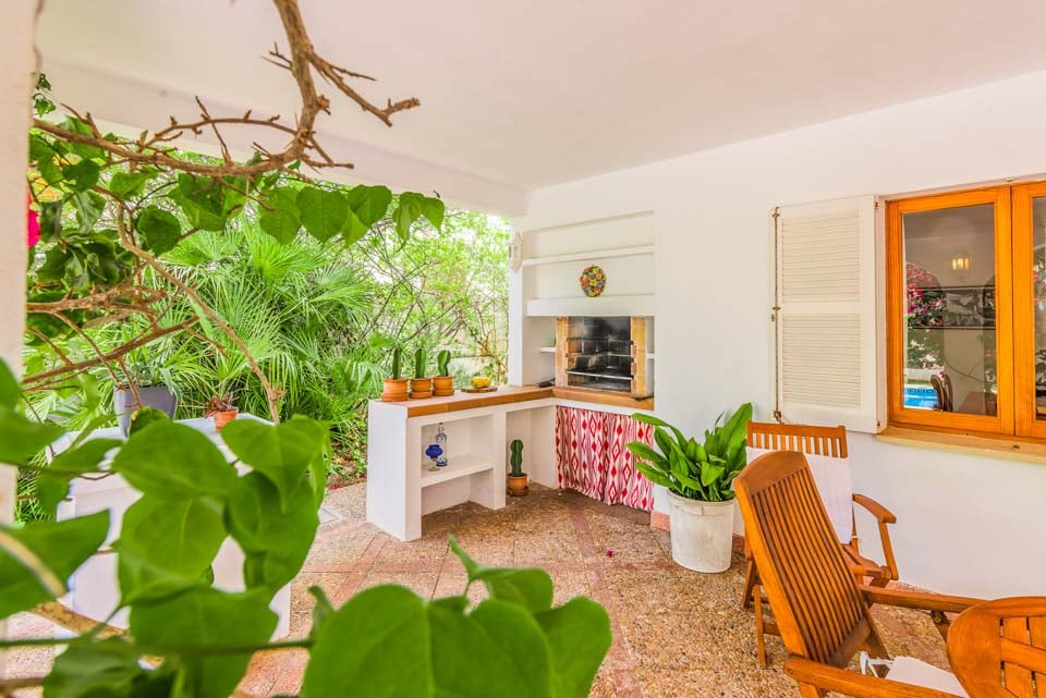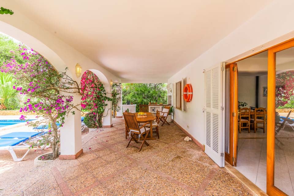 Denne herlig bortgjemte frittliggende villaen ligger beleilig til i gangavstand fra butikker, restauranter og den fantastiske sandstranden Cala Egos. Sentrum av Cala D'Or med sin trendy marina og et utmerket utvalg av internasjonale og tradisjonelle restauranter, kafeer og butikker ligger bare en 5-minutters kjøretur unna. Det er også en solrik og avslappende følelse over interiøret. Den attraktive innredningen forsterkes av lyse gulvfliser som går gjennom hele villaen. Stuen er i mellomtiden elegant, romslig og har virkelig komfortable sofaer. Terrassedører fører ut til den skyggefulle terrassen, med bord og stoler for utendørs måltider. Utenfor omgir modne hager med plener og palmer den romslige solterrassen og det store svømmebassenget. En mursteinsgrill, utemøbler og solsenger er tilgjengelig for å nyte måltider utendørs og sole seg i denne herlige villaen.