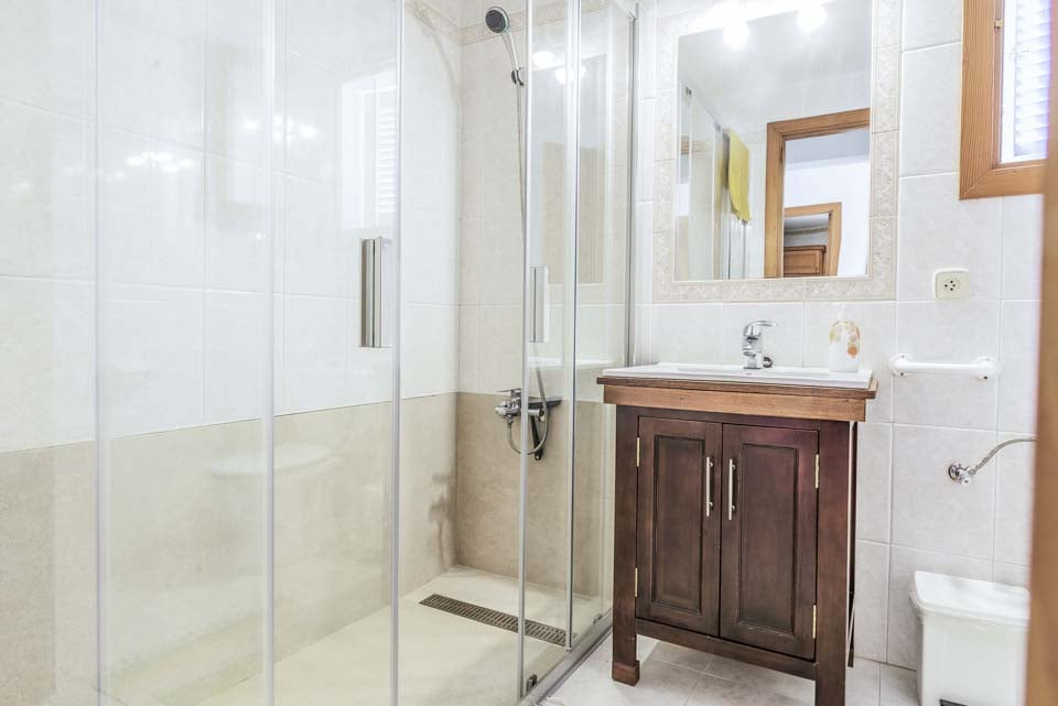 For å komme til villaen er det en 130 cm bred sti med ett trinn. Inngangsdøren har en bredde på 77 cm, og andre dører som gir tilgang til bassengområdet er døren til terrassen som er 144 cm bred. Stiene fra villaen til bassengområdet er 220 cm brede, eiendommen er flat, men det er 2 trinn fra terrassen til bassenget, og bassenget har romerske trinn for å komme inn. Den bredeste soveromsdøren i første etasje er 68 cm bred, som er soverommet med to enkeltsenger, og det bredeste badet i første etasje er 57 cm bredt. Døren inn til kjøkken/spisestue er 68 cm bred og døren inn til stuen er 117 cm bred. *Vær oppmerksom på at selv om vi har gjort vårt ytterste for å sikre at informasjonen som gis er nøyaktig, kan det forekomme feil. Hvis du trenger mer spesifikk informasjon om villaen, ikke nøl med å kontakte oss.