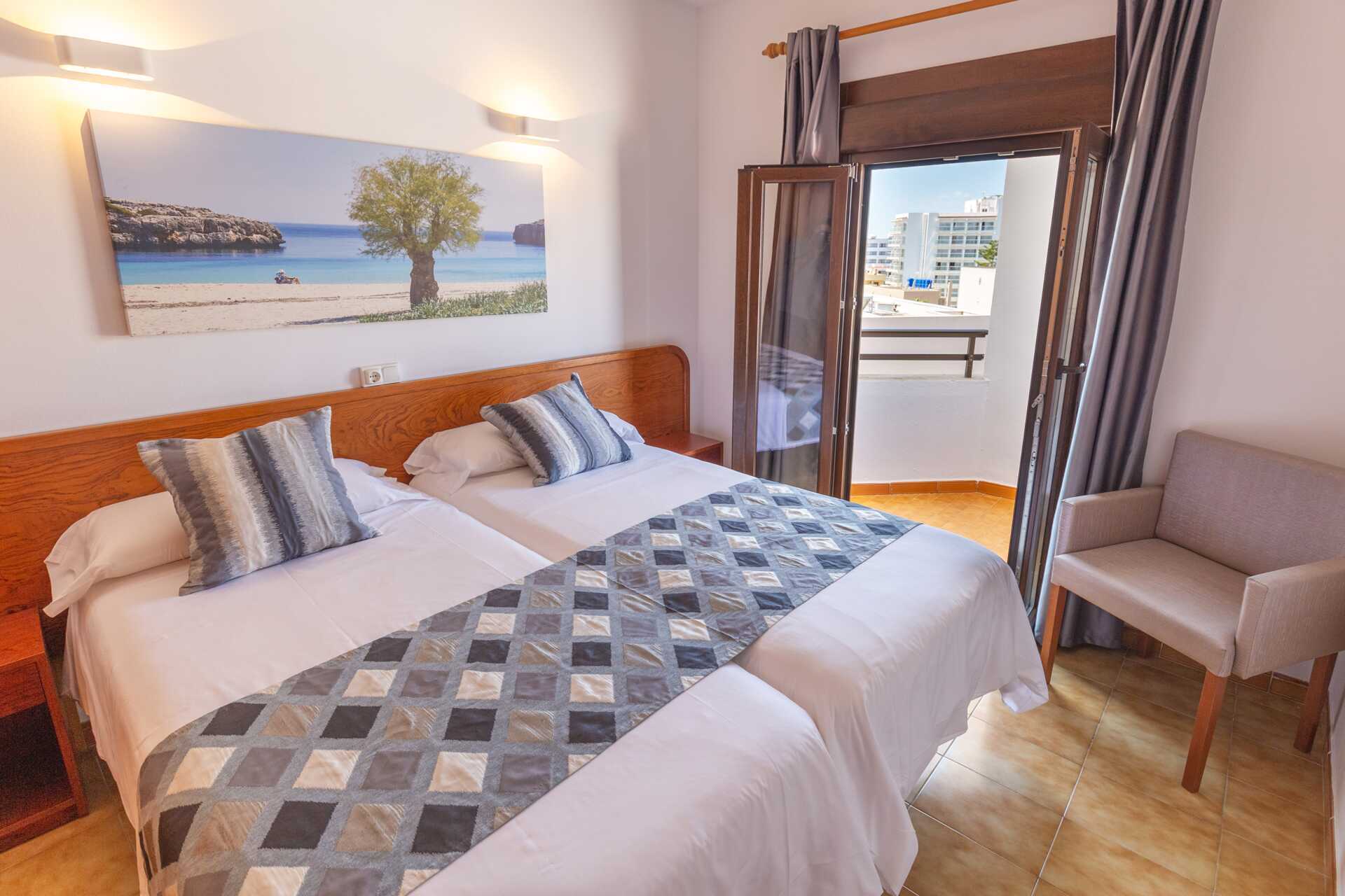 Treromsleilighet med balkong, noen med havutsikt. To soverom og kombinert stue med minikjøkken. To enkeltsenger i hvert soverom. Mulig med ekstrasenger i sovesofa. Minikjøkken med kokeplater, kjøleskap, mikrobølgeovn, vannkoker, brødrister, kaffetrakter og enkelt kjøkkenutstyr. Wifi inkludert. Safe mot avgift. Takvifte. TV. Hårføner. Dusj og wc. Rengjøring 3 ggr/uke.