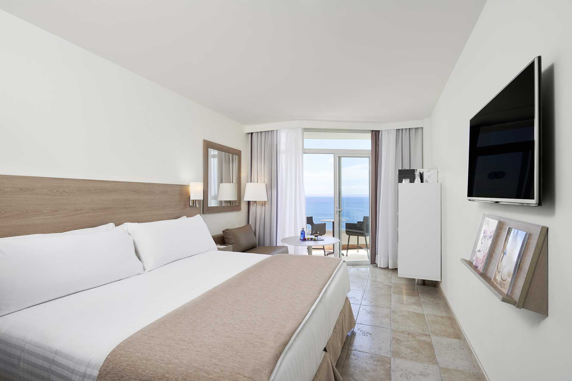 Dobbeltrom med balkong eller terrasse, noen med havutsikt eller begrenset havutsikt. En dobbeltseng eller to enkeltsenger. Mulig med ekstraseng for et barn på sovesofa. Wifi, luftkondisjonering og safe inkludert. Safen har strømuttak for lading av telefoner, kameraer, nettbrett osv. Minibar. Vannkoker samt kaffe og te. TV. Badekåper og tøfler Badekar eller dusj samt wc. Rengjøring 7 ggr/uke. Barn under 2 år regnes inn i maksantallet i rommet.