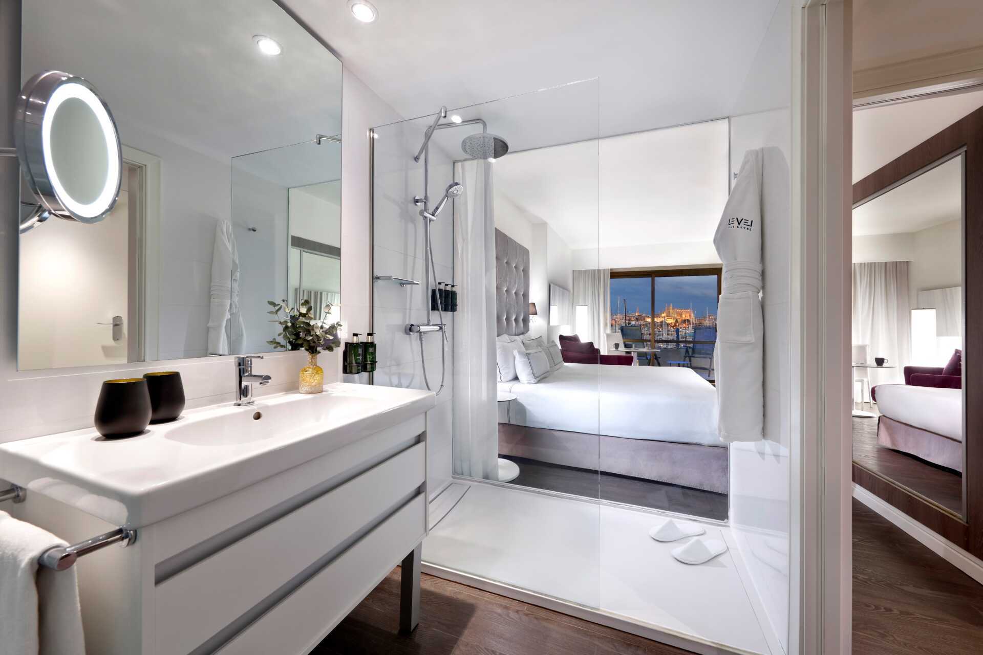 Deluxerom med balkong eller terrasse, noen med havutsikt. En dobbeltseng eller to enkeltsenger. Putemeny. Wifi, luftkondisjonering og safe inkludert. Minibar. Espressomaskin, kapsler inkludert. TV. Badekåper og tøfler Hårføner. Baderom med dusj og wc. Rengjøring 7 ggr/uke.