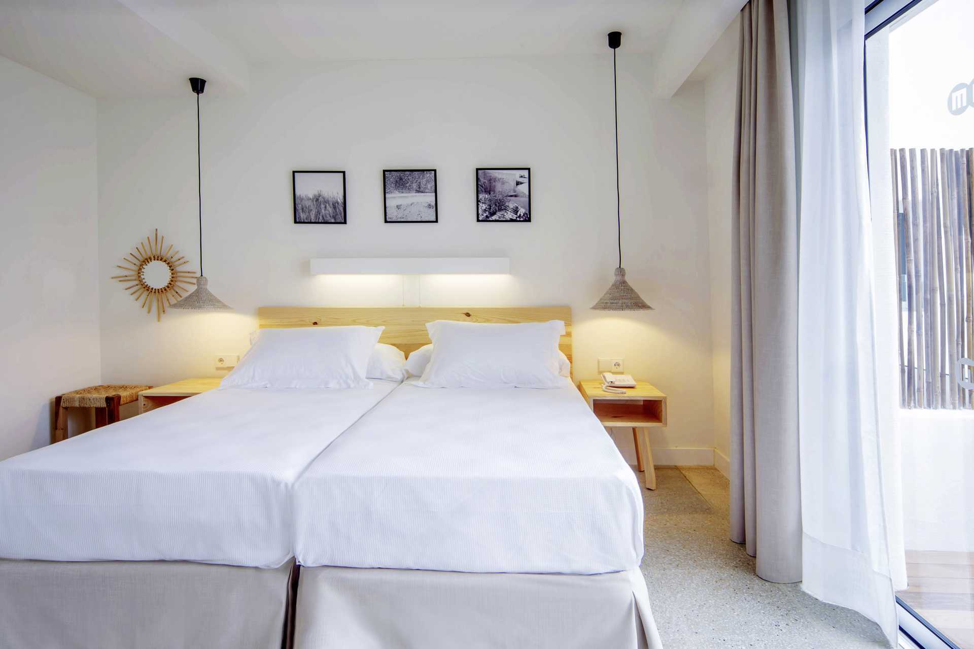 Dobbeltrom med balkong eller uten uteplass. En dobbeltseng eller to enkeltsenger. Wifi og luftkondisjonering inkludert. Safe mot avgift. Kjøleskap. TV. Hårføner. Dusj og wc. Rengjøring 7 ggr/uke.