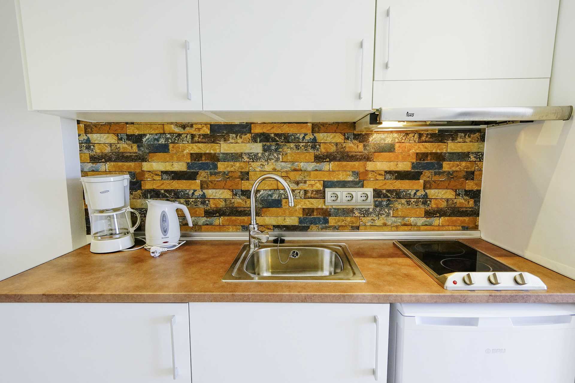 Toromsleilighet med balkong eller terrasse. Et soverom og en stue med minikjøkken. To enkeltsenger. Mulig med ekstrasenger i sovesofa. Minikjøkken med kjøleskap, kokeplater, kaffetrakter, mikrobølgeovn, vannkoker og enkelt kjøkkenutstyr. Wifi og luftkondisjonering er inkludert. Safe mot avgift. Hårføner. Dusj og wc. Rengjøring 7 ggr/uke.