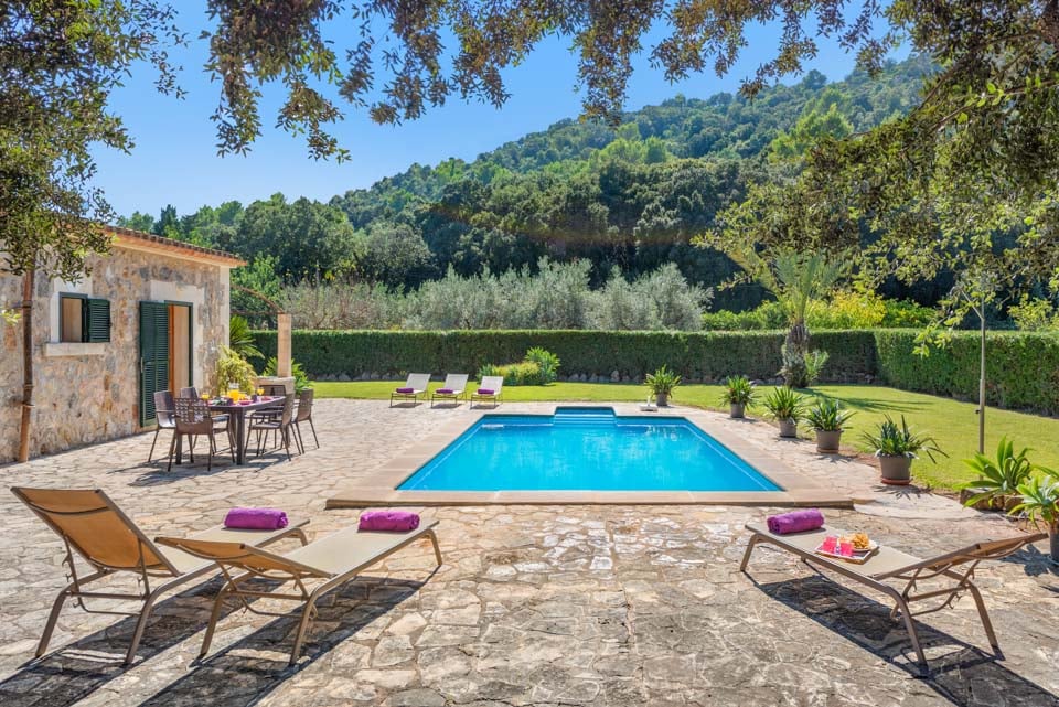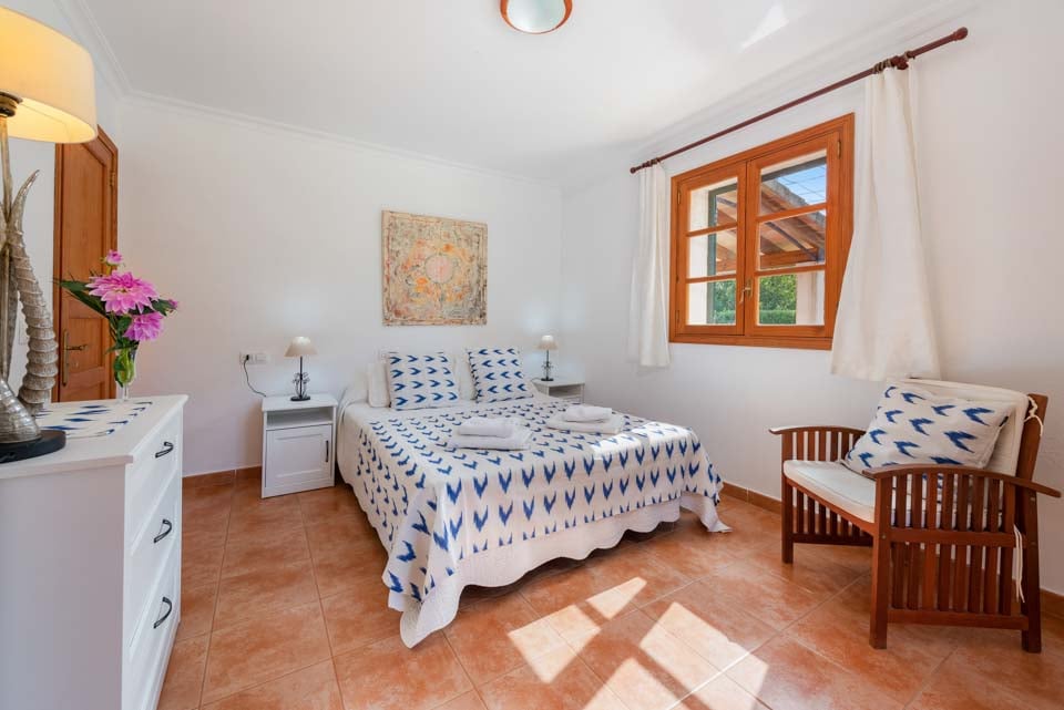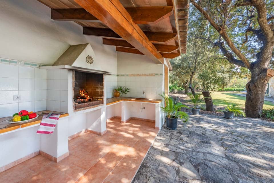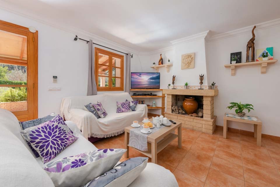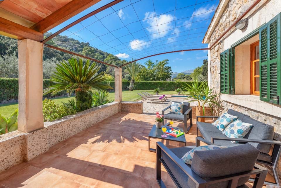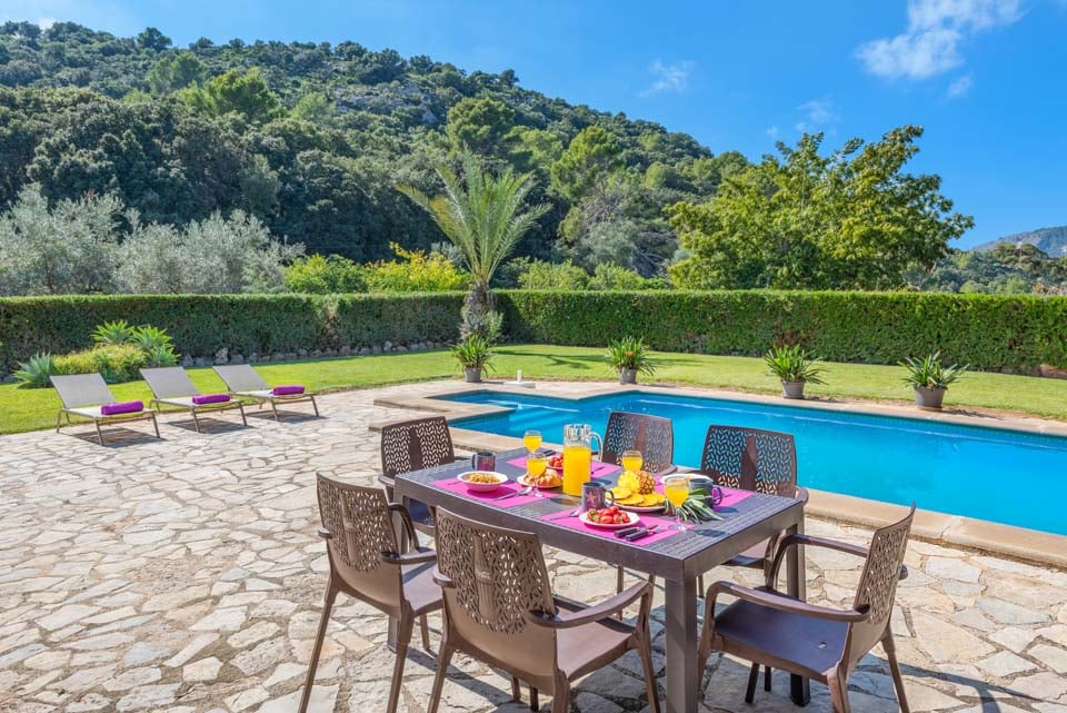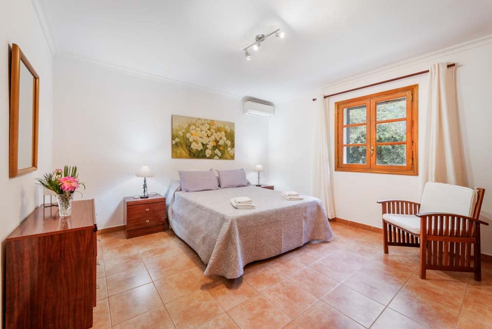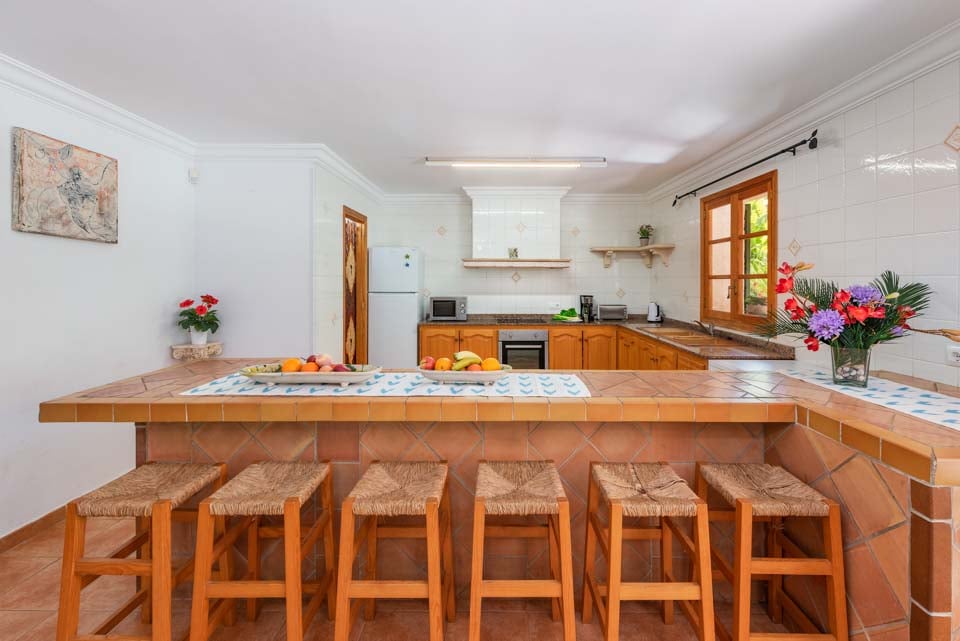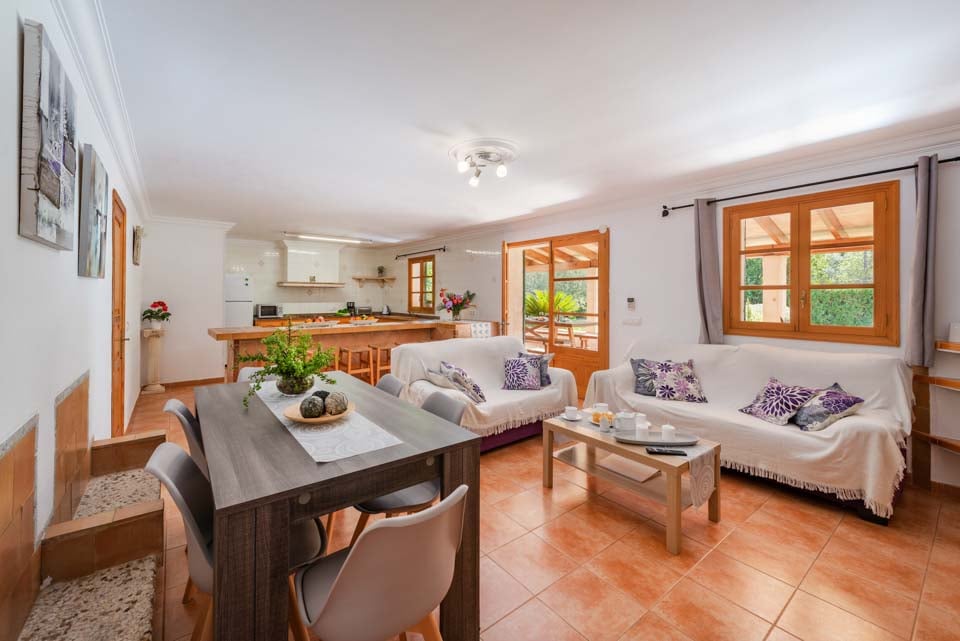 I utkanten av gamlebyen i Pollensa finner vi Can Torres, et tradisjonelt mallorcansk feriested med en imponerende terrasse, flott for utendørsliv. Den romslige uteplassen med sitt forfriskende basseng og grillområde er ideell for late dager ved bassengkanten. Trekk frem en solseng med et glass hjemmelaget sangria mens du beundrer fjellutsikten som omgir deg. Utsikten fra terrassen er virkelig ikke til å gå glipp av, med sin store plen og ruvende trær, vil du føle at du er i din egen oase. For utendørs servering kan du velge mellom å spise i solen eller skyggen, ettersom et spisebord i benkstil står under den bjelkede terrassen og tilbyr enda mer nydelig utsikt over hagen.
