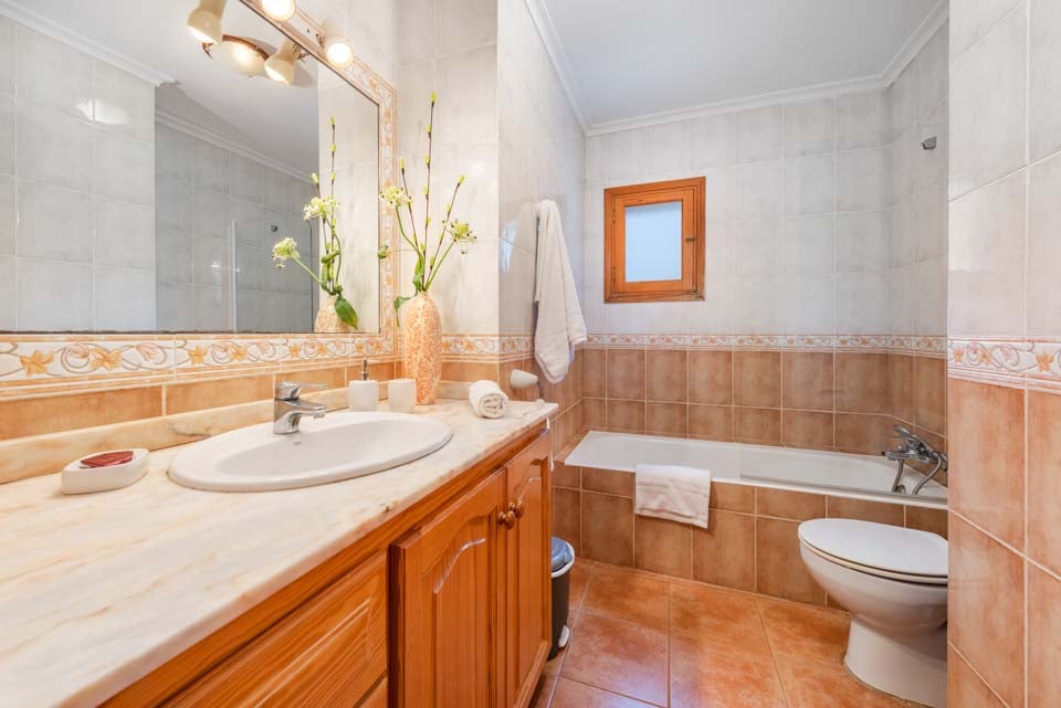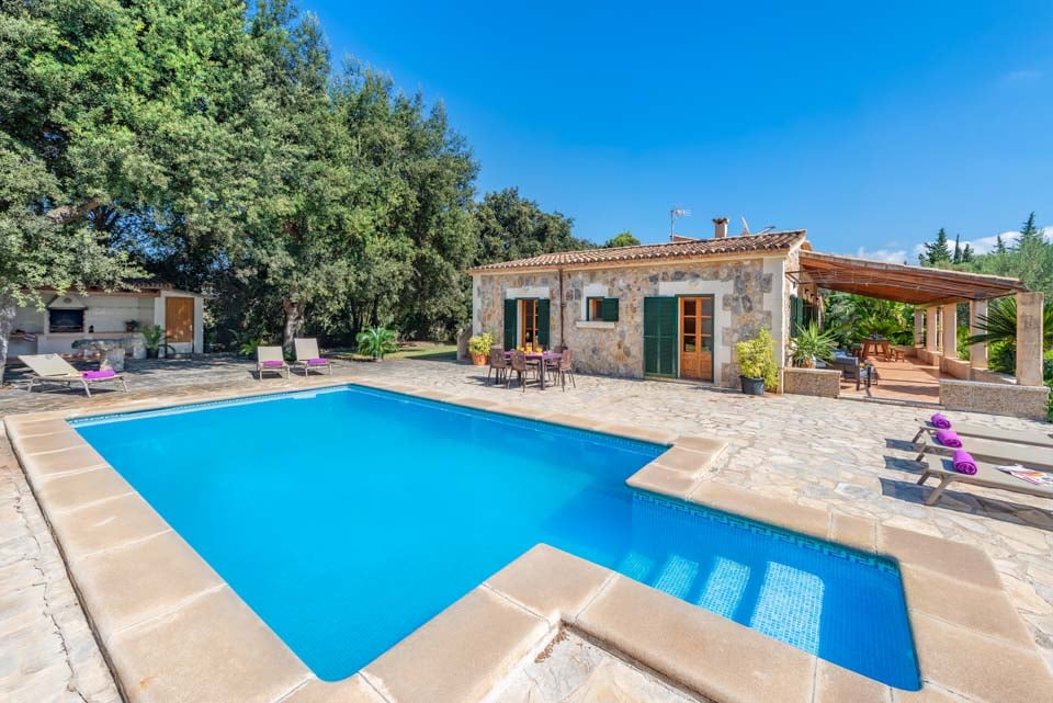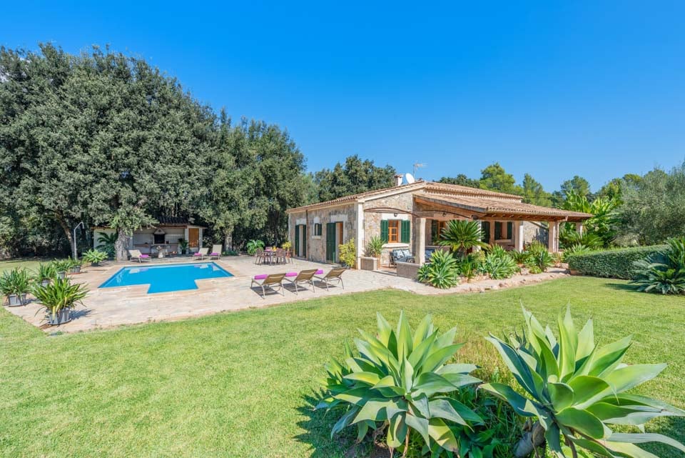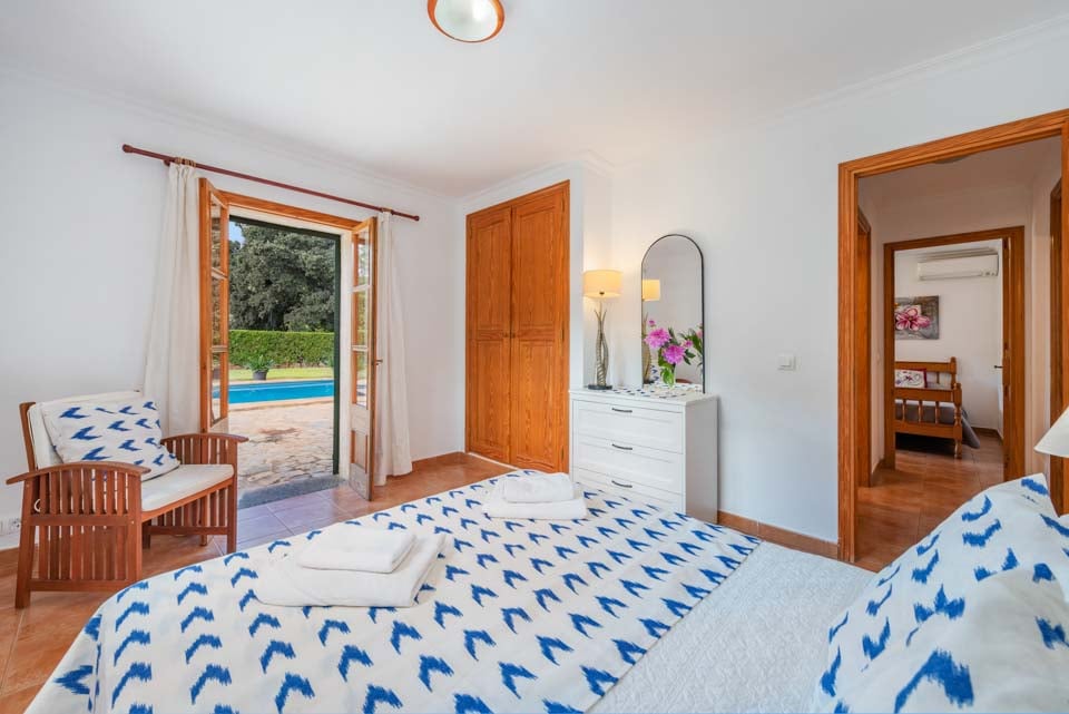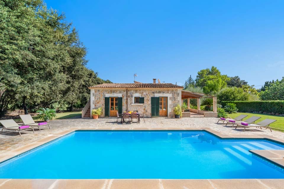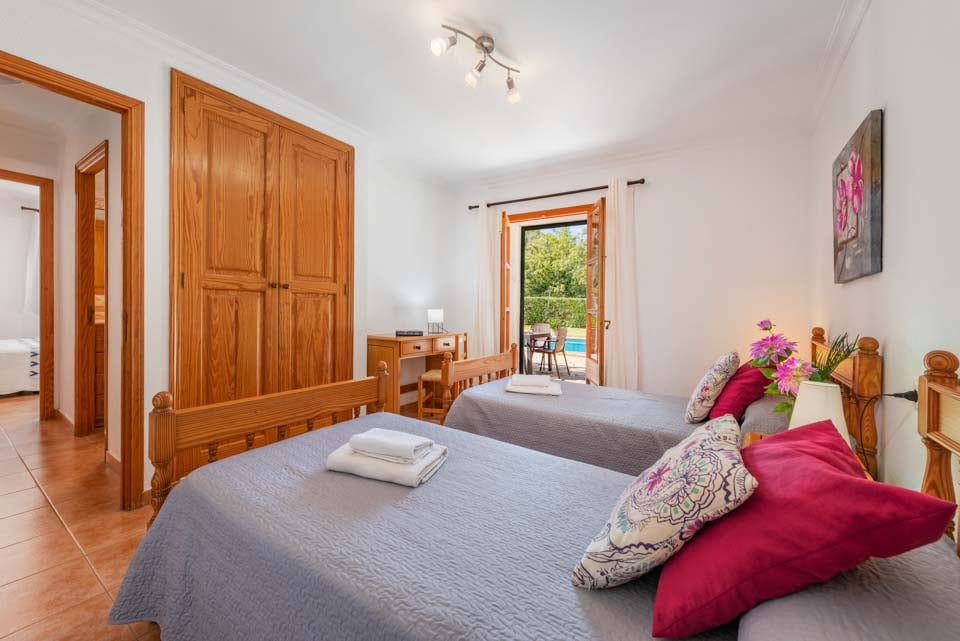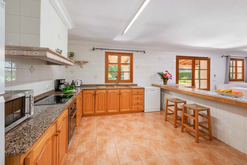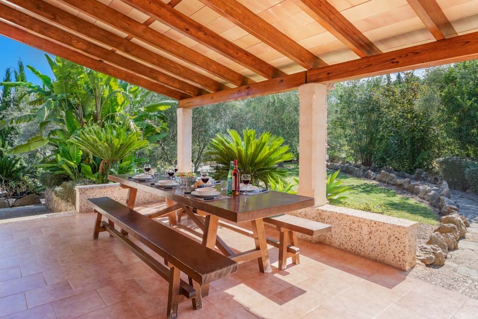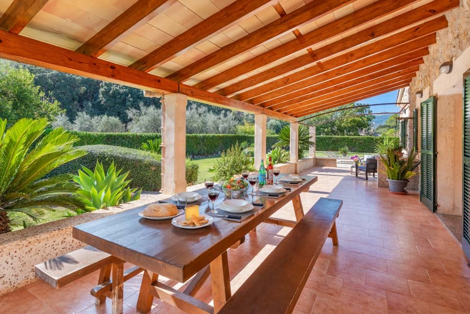 I utkanten av gamlebyen i Pollensa finner vi Can Torres, et tradisjonelt mallorcansk feriested med en imponerende terrasse, flott for utendørsliv. Den romslige uteplassen med sitt forfriskende basseng og grillområde er ideell for late dager ved bassengkanten. Trekk frem en solseng med et glass hjemmelaget sangria mens du beundrer fjellutsikten som omgir deg. Utsikten fra terrassen er virkelig ikke til å gå glipp av, med sin store plen og ruvende trær, vil du føle at du er i din egen oase. For utendørs servering kan du velge mellom å spise i solen eller skyggen, ettersom et spisebord i benkstil står under den bjelkede terrassen og tilbyr enda mer nydelig utsikt over hagen.