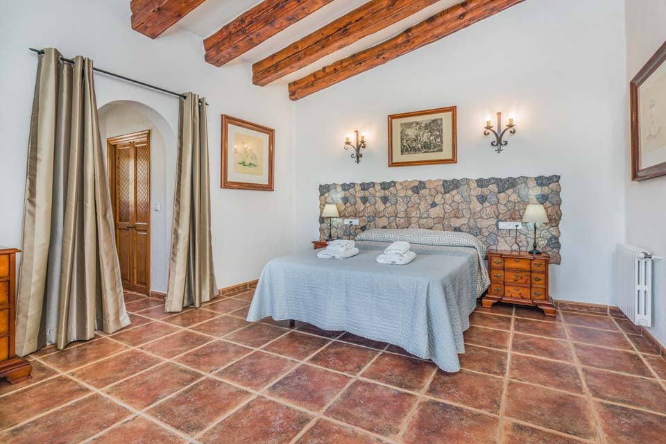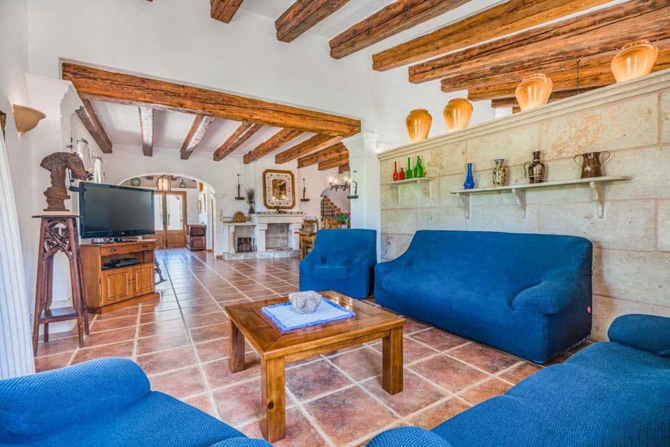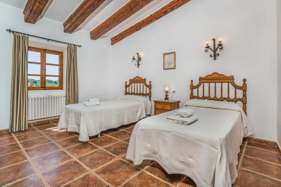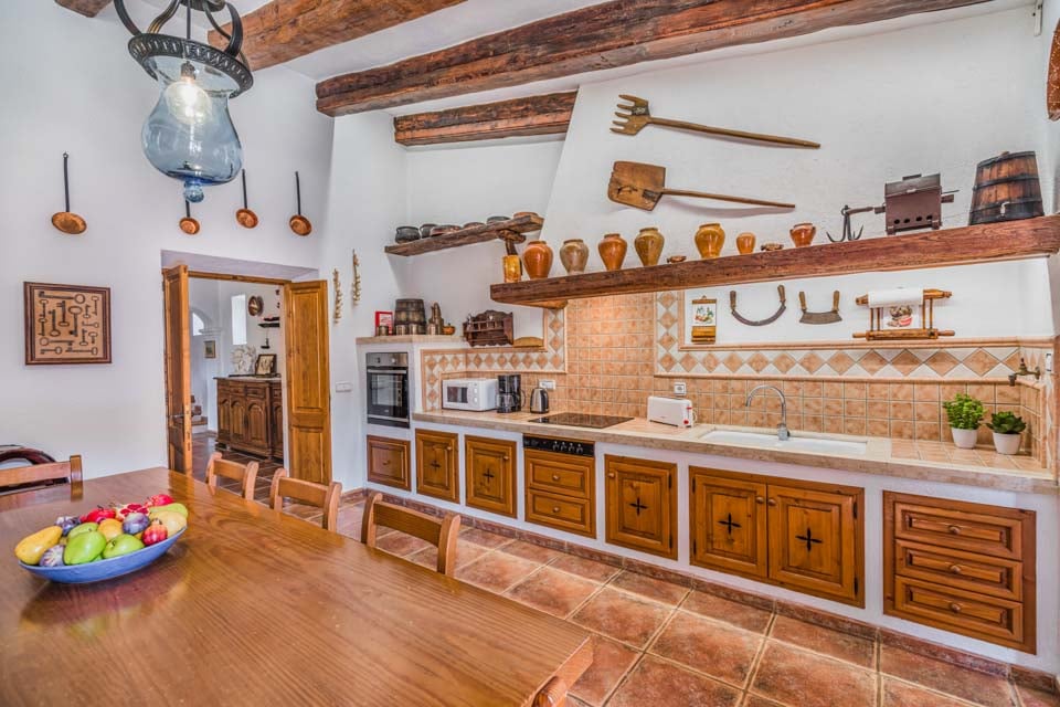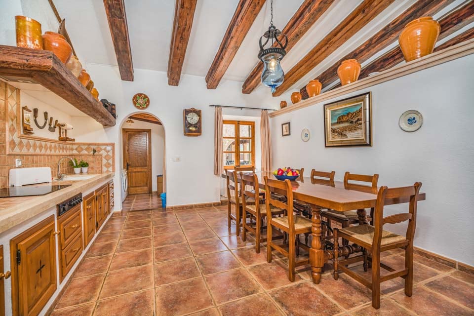 Innvendig er villaen hjemmekoselig med tradisjonelle preg. Bjelketak, kule gulvfliser og tradisjonelle møbler er hovedtrekkene gjennomgående. Det søte kjøkkenet, med treskap og oransje fliser, er det ideelle stedet for å lage mat i full fart innendørs. Det er totalt tre romslige soverom, ett med dobbeltseng og to med to enkeltsenger, noe som gjør denne villaen flott for opptil seks gjester.