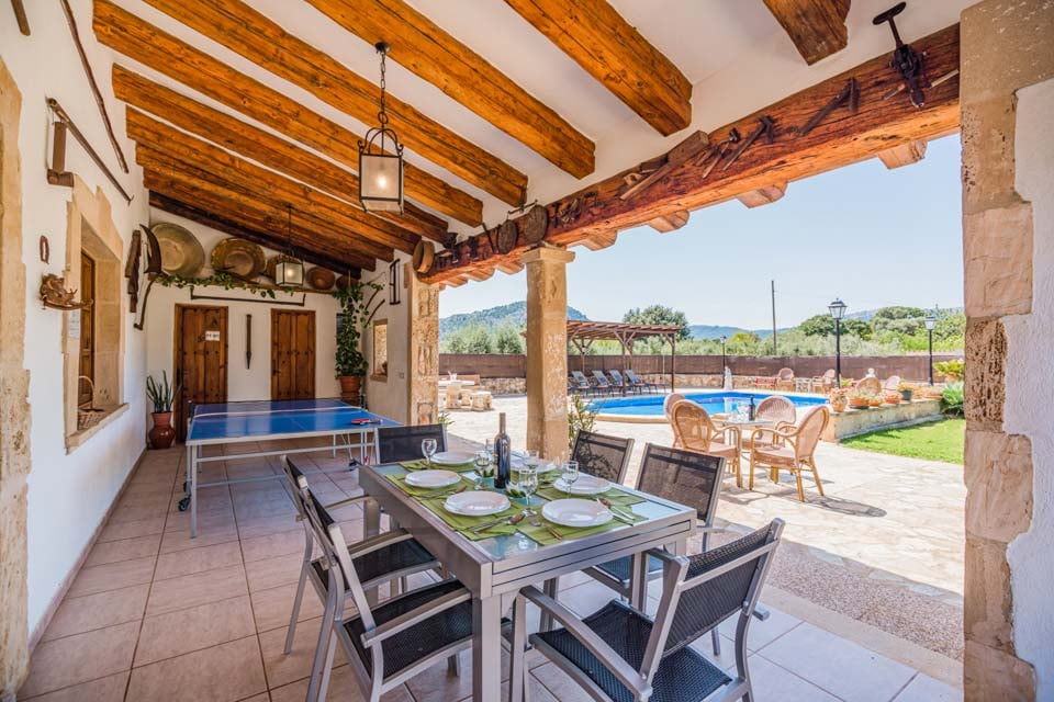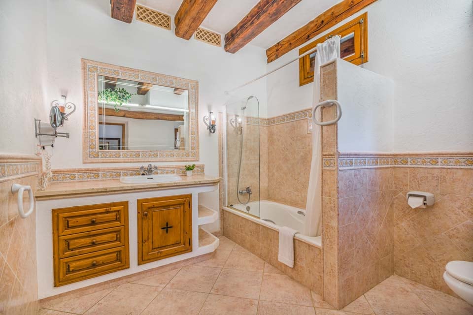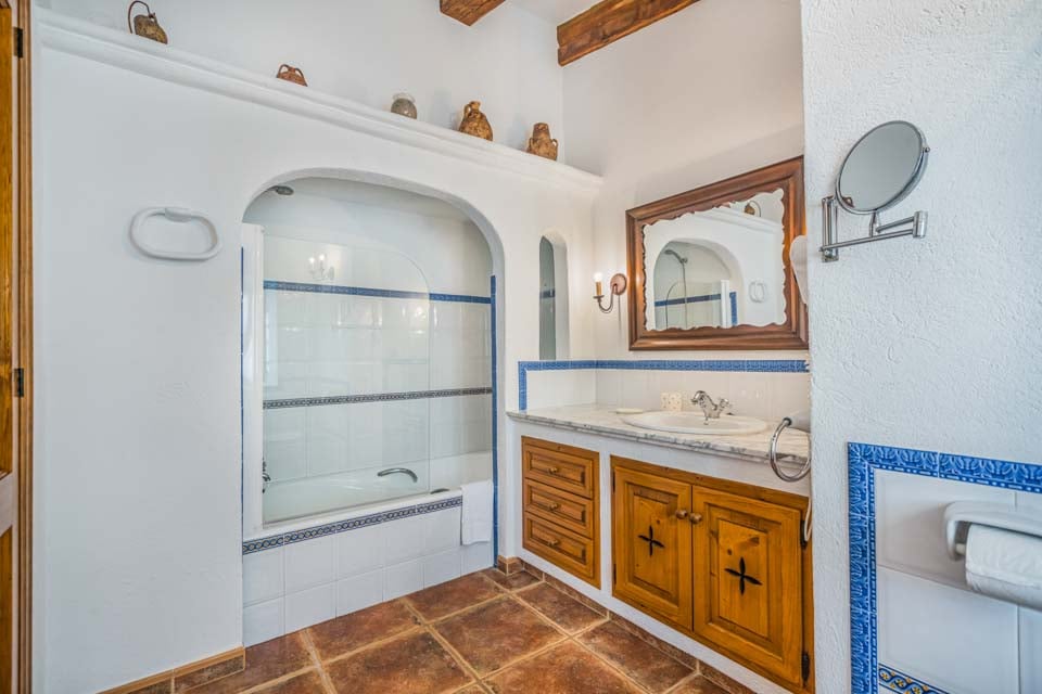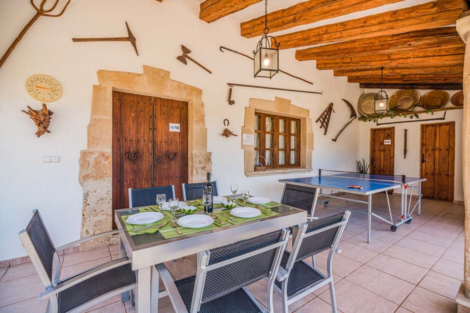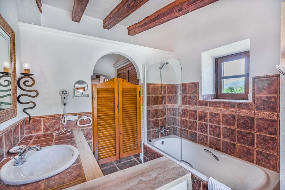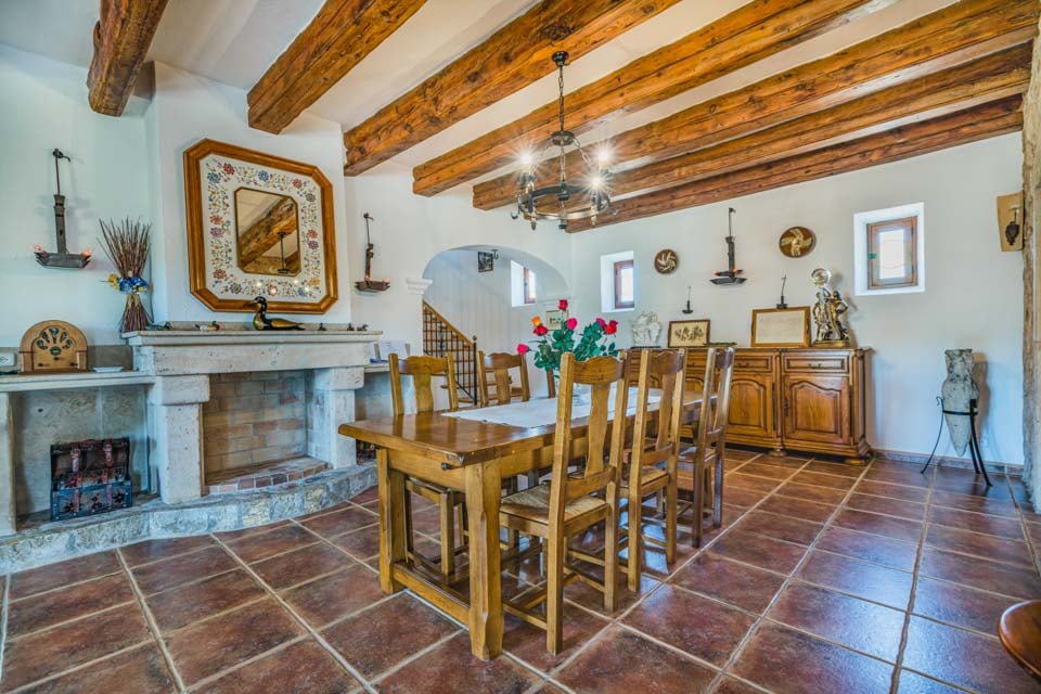 Innvendig er villaen hjemmekoselig med tradisjonelle preg. Bjelketak, kule gulvfliser og tradisjonelle møbler er hovedtrekkene gjennomgående. Det søte kjøkkenet, med treskap og oransje fliser, er det ideelle stedet for å lage mat i full fart innendørs. Det er totalt tre romslige soverom, ett med dobbeltseng og to med to enkeltsenger, noe som gjør denne villaen flott for opptil seks gjester.