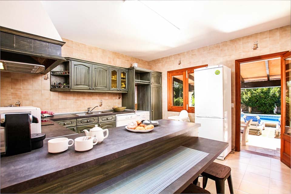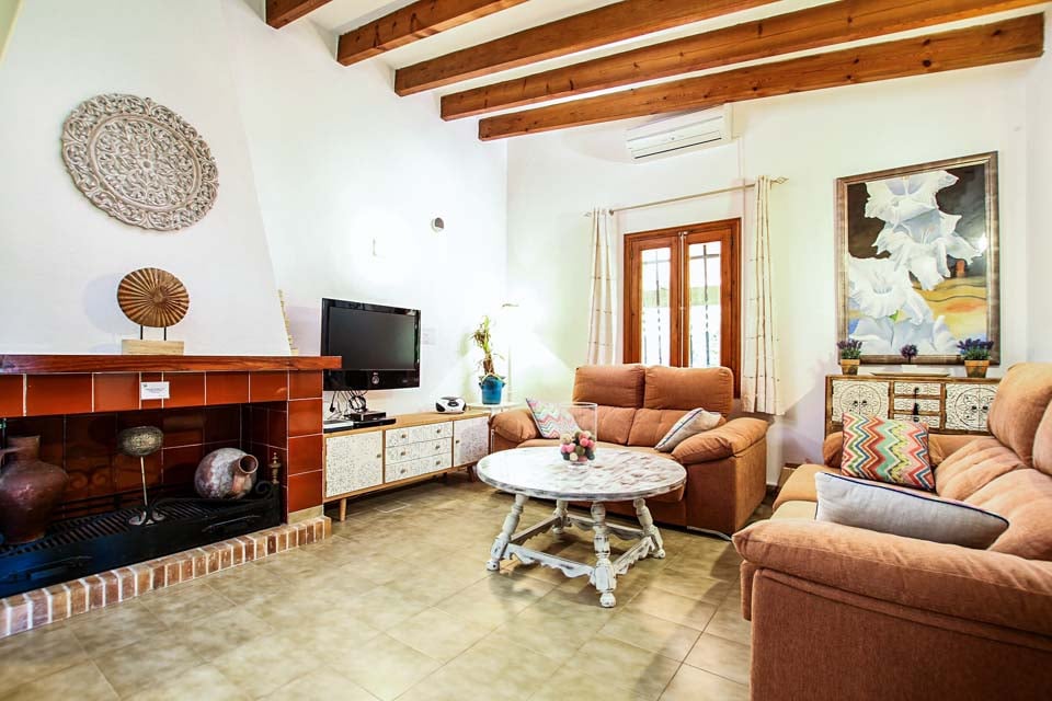 Når du kommer inn i Villa Barraca, vil du bli møtt av elektriske porter og en romslig innkjørsel som passer for to biler. Men med Villa Baracs praktiske beliggenhet er bil valgfritt. Førsteinntrykket er alt, og den fantastiske utsikten over Tramuntana-fjellene fra hageterrassen er virkelig sensasjonell. Med en stor mursteinsgrill og utendørs servering, plassert under en tradisjonell overbygd terrasse, trenger du ikke å dra langt for en avslappende dag ved bassenget. Solsenger omkranser det forfriskende bassenget, med vakre mosaikker og myk plen på begge sider. Fra den overbygde terrassen fører en døråpning deg inn til kjøkkenet. Dette vakkert malte grønne kjøkkenet er fullt utstyrt med oppvaskmaskin, vaskemaskin og frokostbar. Ideell for en morgenkaffe og croissant. Fortsett gjennom, så vil du legge merke til stuen, med skråbjelker i taket, hvitkalkede vegger og et rustikt spisebord. To av de tre soverommene ligger i første etasje, ett tomannsrom og ett dobbeltrom, alle med klimaanlegg med timer. To komplette bad fullfører første etasje.