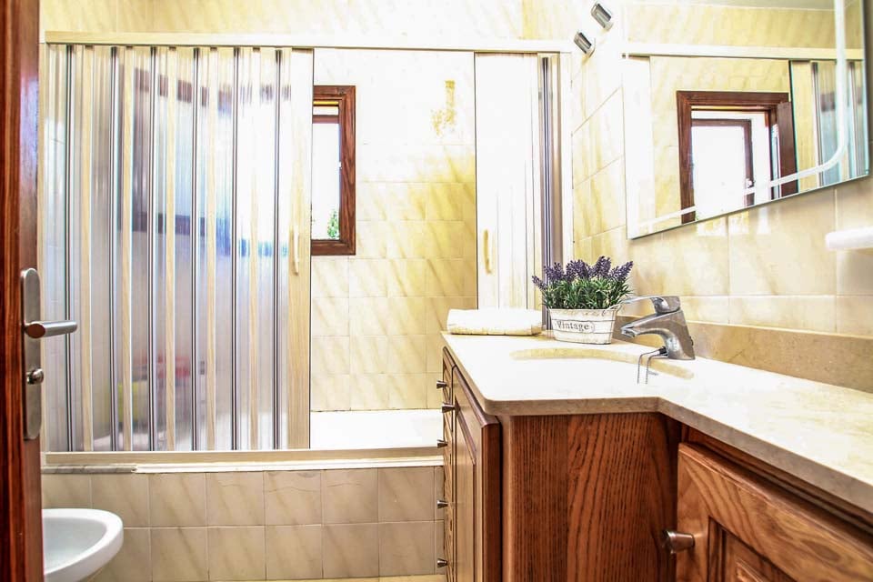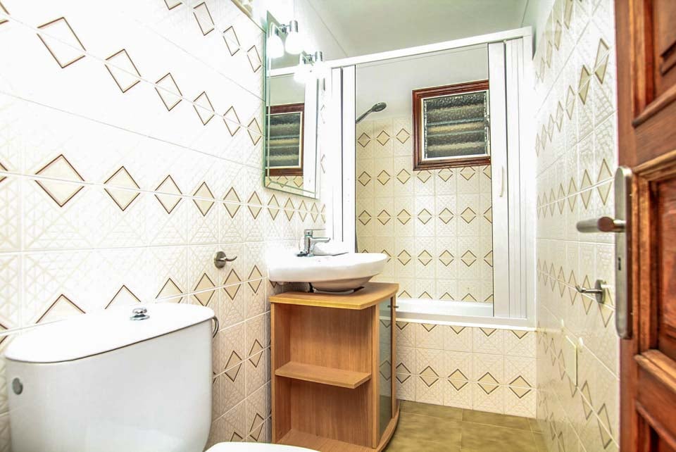 For å komme til villaen er det en 250 cm bred sti langs ett trinn. Inngangsdøren har en bredde på 80 cm, mens døren til terrassen er 71 cm bred. Det er ett trinn fra det overbygde sitteområdet til bassengkanten. Terrassen er flislagt og flat, med et rundtliggende plenområde. Innvendig er det ett trinn fra stuen til kjøkkenet, soverom 1 og et av badene. Døren til soverommet med to enkeltsenger er 75 cm bred, mens begge baderomsdørene er 60 cm brede. Det er 17 trinn opp til første etasje. Døren inn til kjøkken/spisestue er 70 cm bred og døren inn til stuen er 89 cm bred. *Vær oppmerksom på at selv om vi har gjort vårt ytterste for å sikre at informasjonen som gis er nøyaktig, kan det forekomme feil. Hvis du trenger mer spesifikk informasjon om villaen, ikke nøl med å kontakte oss.