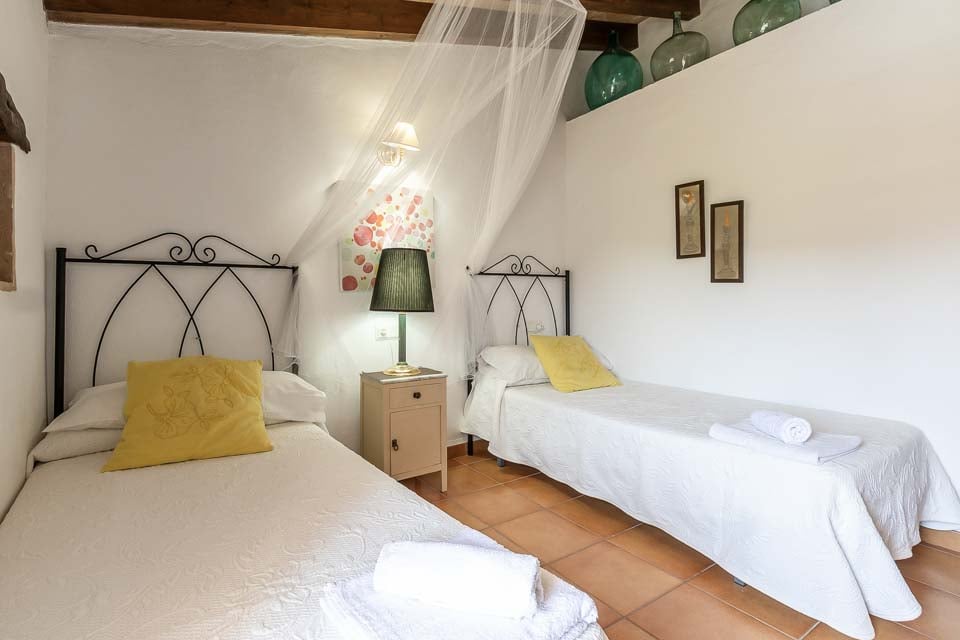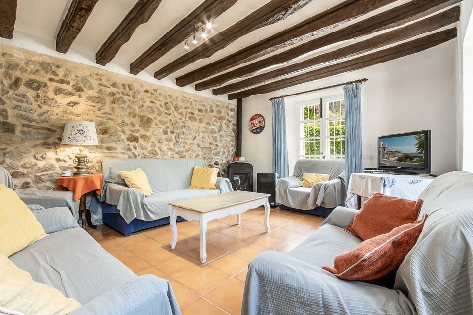 Inne finner du en varm og innbydende atmosfære. Synlig murverk og originale detaljer peker på bygningens kulturarv, mens oppholdsrommene har blitt oppdatert for å sikre et komfortabelt opphold. Villaen har tre romslige soverom, to bad, en koselig stue og et fullt utstyrt kjøkken – ideelt for familier eller grupper som søker en avslappet øyferie.