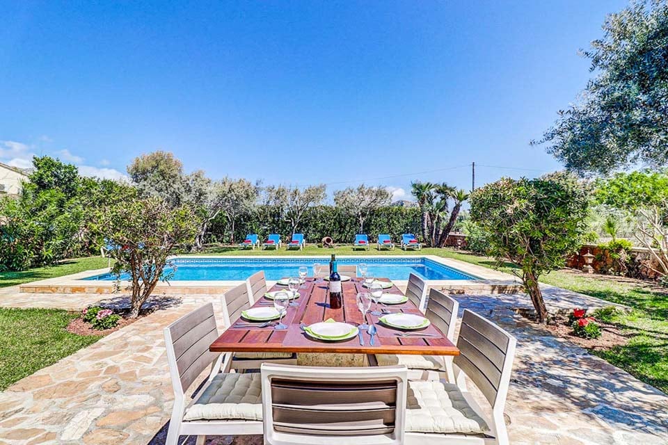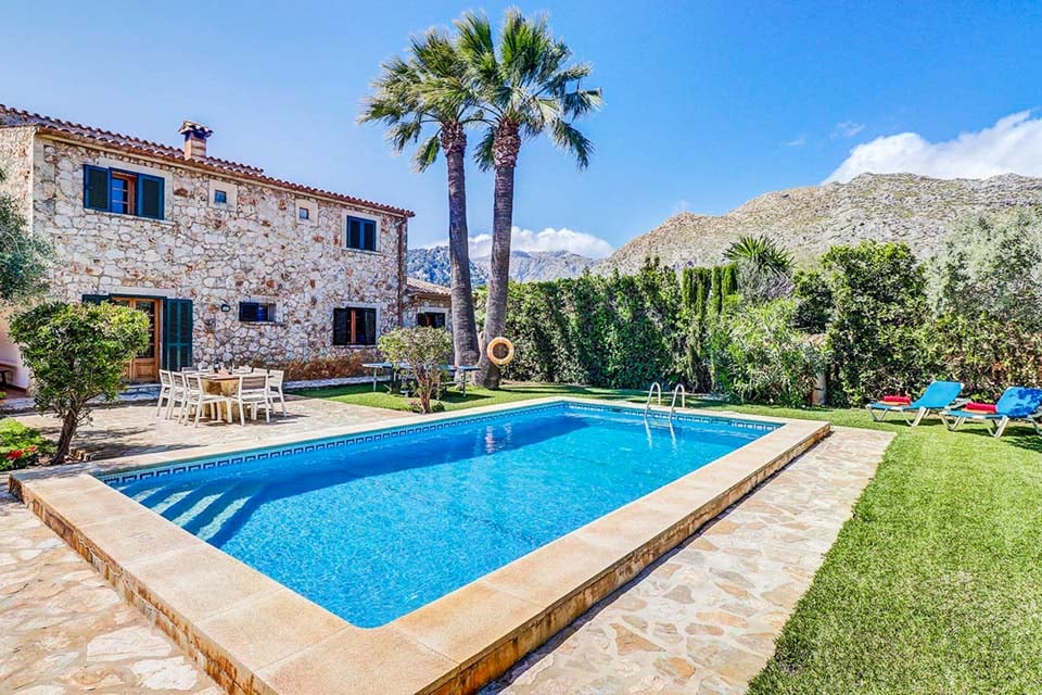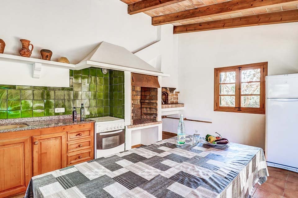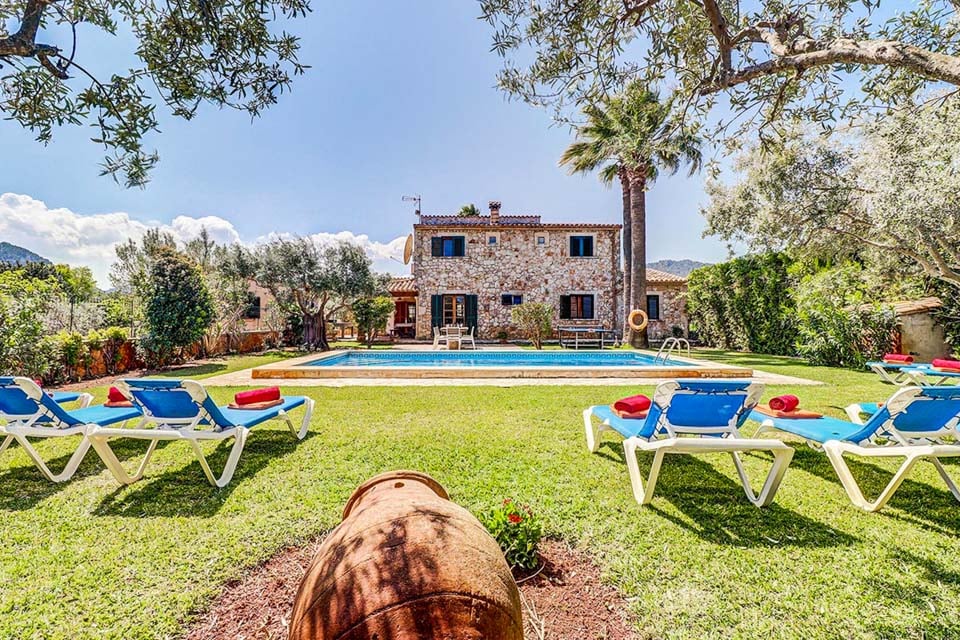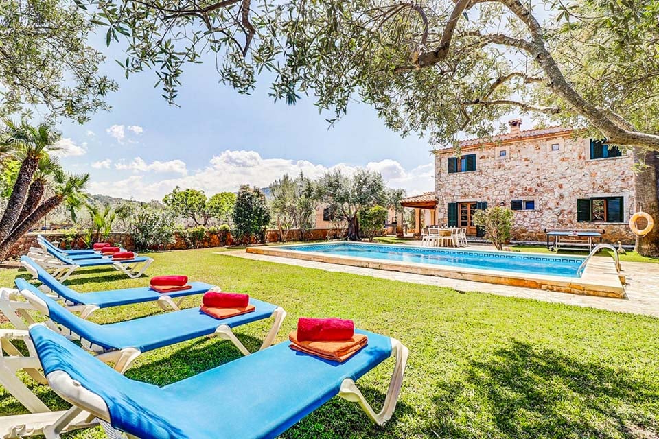 Villa Can Joan ligger i det enestående mallorcanske landskapet. Denne fantastiske steinkledde eiendommen, fylt til randen med tradisjonell sjarm, er et must å se. En stor hage og terrasse kan skilte med et imponerende 8 meter langt svømmebasseng, dekorert med blå meandermønstrede fliser og lyse mosaikker. Eviggrønne busker, palmer og de fantastiske Tramuntana-fjellene omgir hagen og gir et perfekt naturlig bakteppe. Det er så mange utendørsserveringsmuligheter at du vil bli bortskjemt med valgmuligheter. Hvorfor ikke sitte på den åpne terrassen, dele en flaske vin og prate natten lang med den fantastiske fjellutsikten i bakgrunnen? Det finnes et bordtennisbord til underholdning, så hvorfor ikke ta et spill og se hvem som vinner?