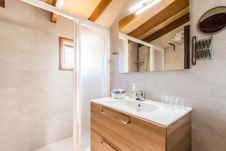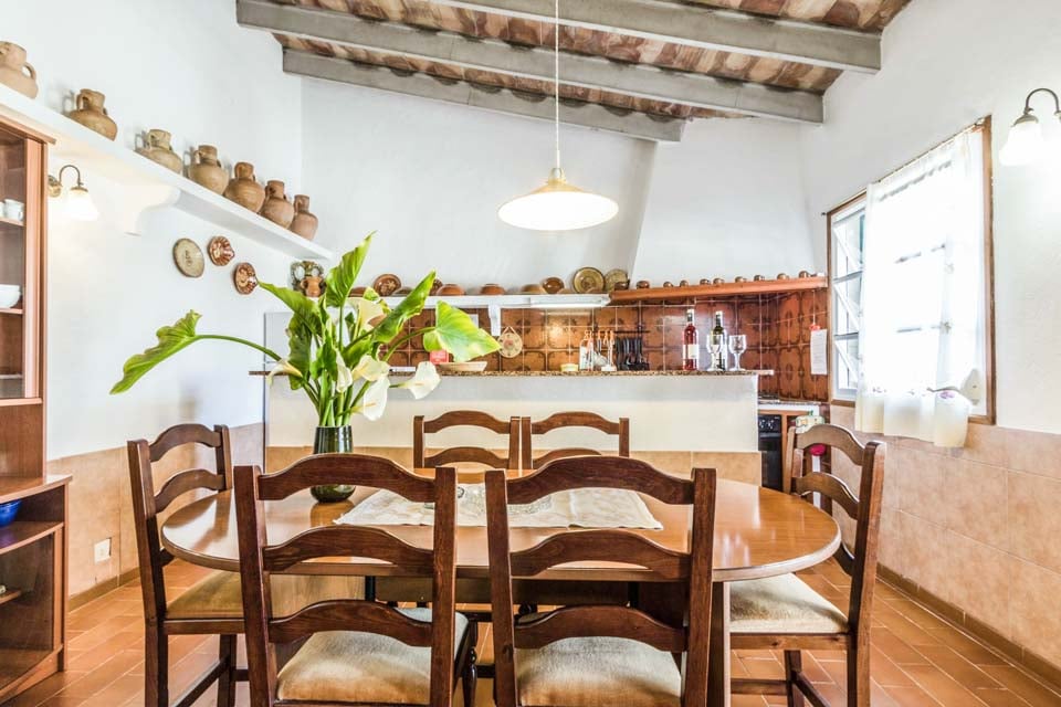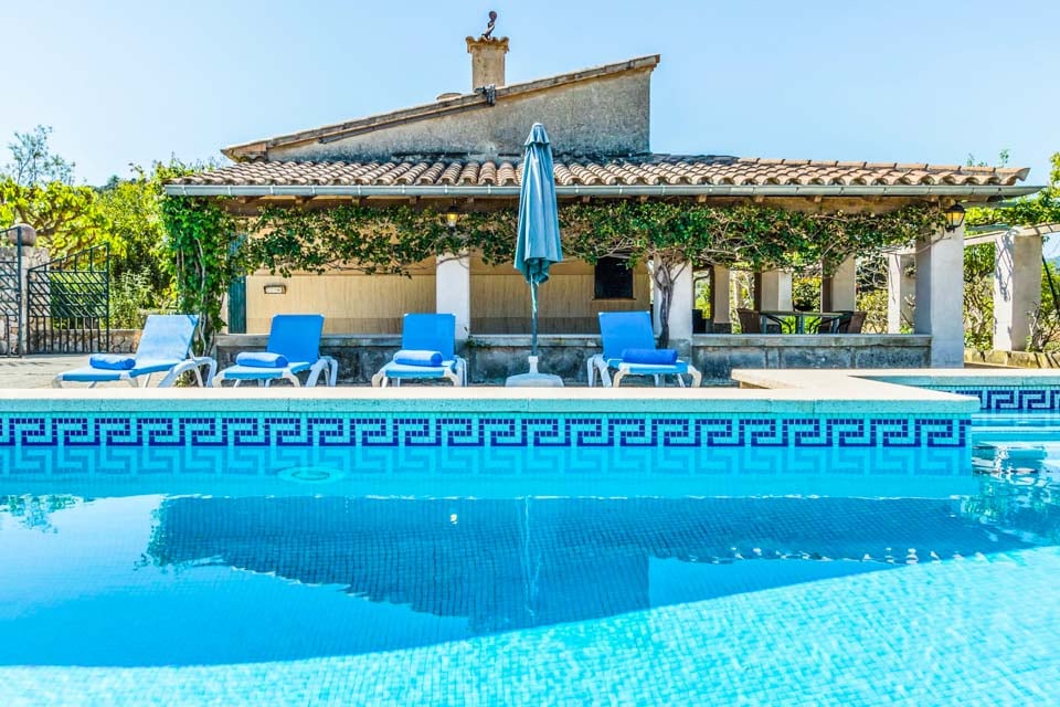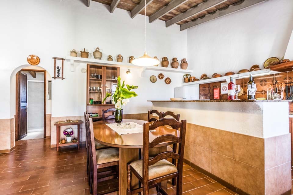Villa Catalina Petit har en nesten gresk følelse, med slynger seg rundt terrassesøylene, bassengmosaikker med blå meandermønstre og romerske trapper. Catalina Petit ligger faktisk i hjertet av den nordlige mallorcanske landsbygda, bare en kort 10-minutters kjøretur fra gamlebyen i Pollensa. Denne naturskjønne byen er gjennomsyret av historie, oser av sjarm og er vel verdt et besøk.