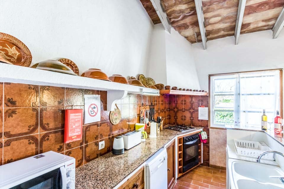 Innvendig vil du legge merke til at bjelker er hovedtrekket i hele eiendommen, alt på ett plan har det tradisjonelle kjøkkenet en frokostbar og et spisebord. Stuen er koselig, med en komfortabel sofa, TV, DVD-spiller og flislagt gulv, som bidrar til å holde rommet kjølig på varme soldager. Det er to soverom på Catalina Petit, ett med dobbeltseng og ett med to enkeltsenger, som begge deler to separate dusjrom, ett innendørs og ett kun med utvendig tilgang.