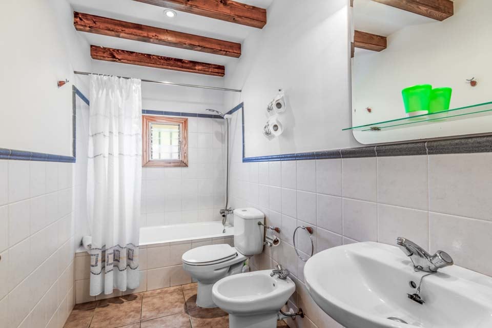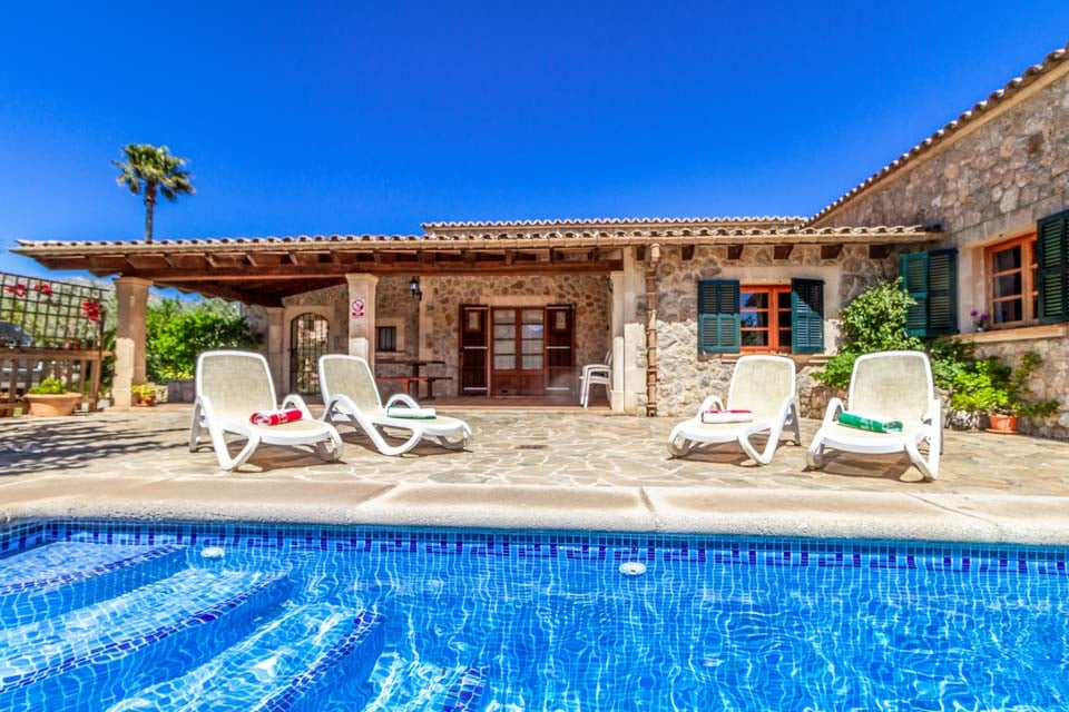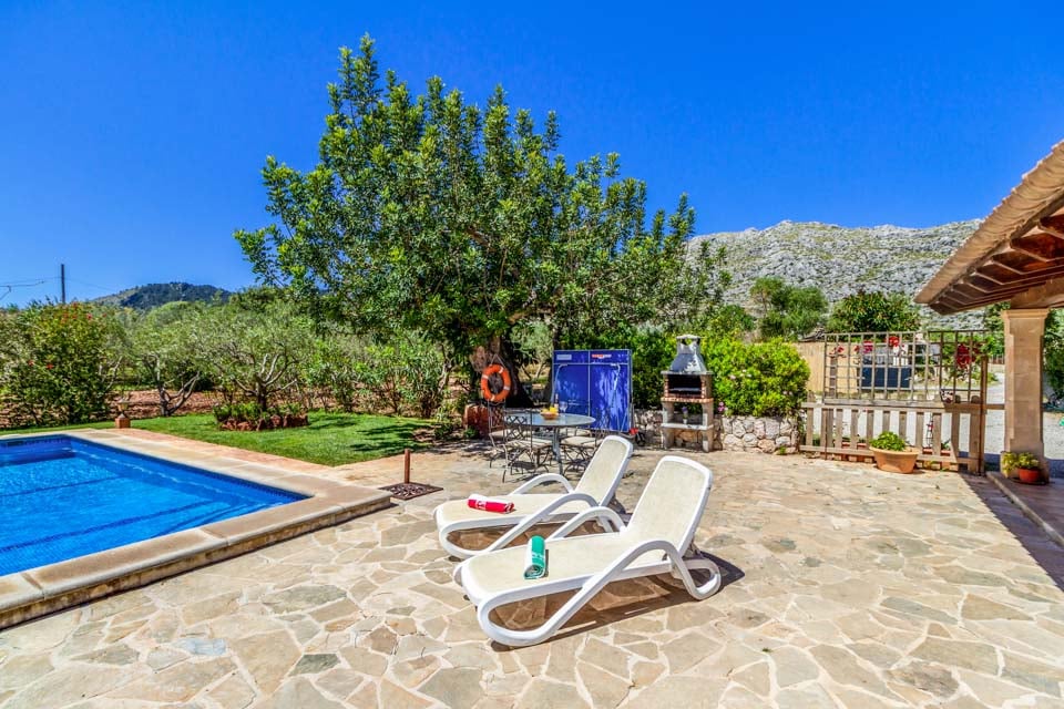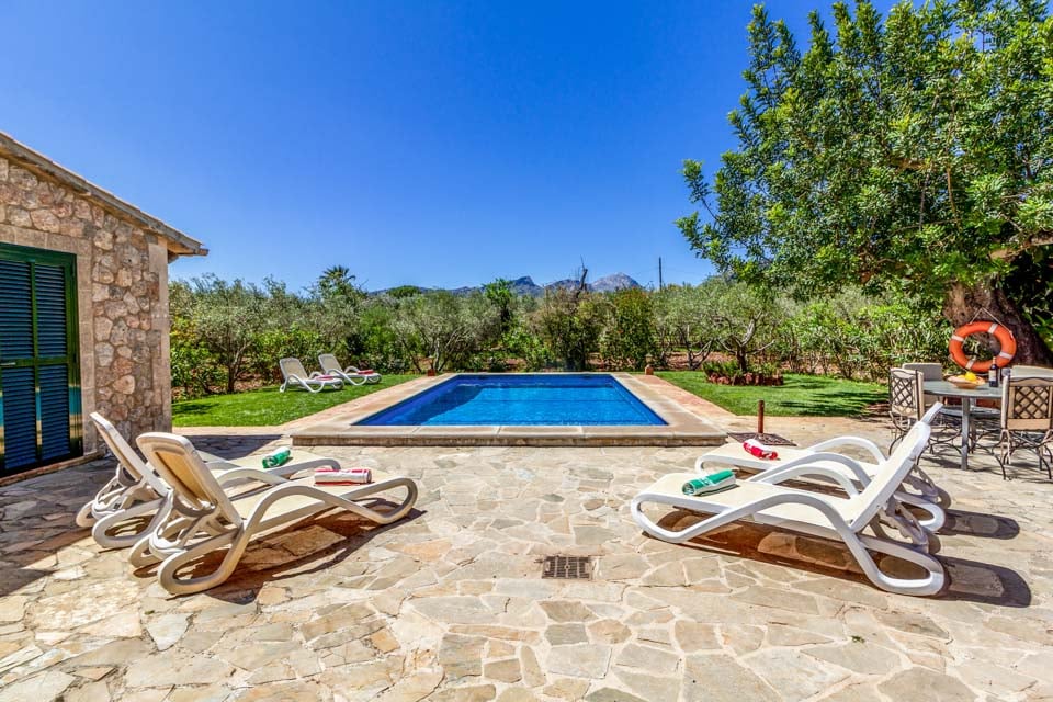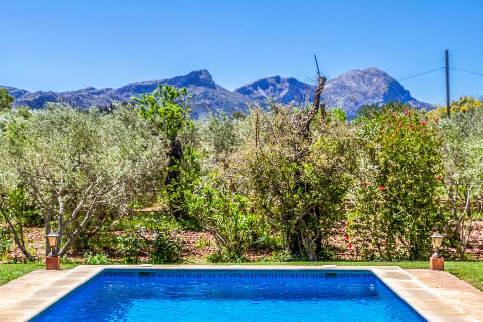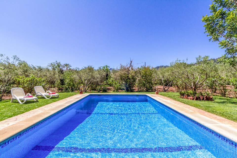 Denne bortgjemte lille oasen er omgitt av frodige trær med fjern utsikt over Tramuntana-fjellene, noe som gir deg den ekstra smule privatliv og følelsen av å være midt i ingensteds. For ikke å glemme det forfriskende private bassenget som står i sentrum, perfekt for å kjøle seg ned i den varme spanske solen som venter på deg. På eiendommen er det rikelig med sitteplasser for å spise utendørs, og for underholdning er det et bordtennisbord hvor du kan slå dine nærmeste!
