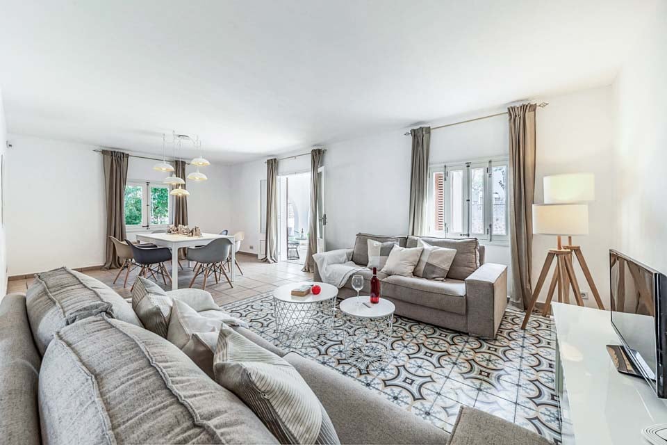 Bare et steinkast fra Puerto Pollensa ligger Villa Monsy 2. Denne vakre eiendommen er identisk med nabovillaen Monsy 1, og har nylig blitt pusset opp og er full av stil. En romslig uteplass har bordtennisbord og et praktfullt blått mosaikkbasseng. Det glitrende vannet ser innbydende ut på en varm solskinnsdag og er det ideelle stedet for å plaske rundt med de små. Hvis du vil slappe av med stil, kan du dra frem en solseng og finne et skyggefullt sted under parasollen. Mens en morgenkaffe trives best under den overbygde terrassen, er en koselig hagesofa det ideelle stedet for å planlegge dagen.