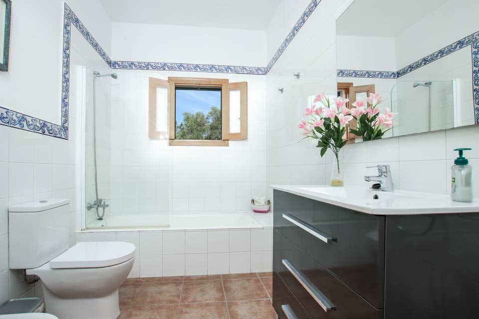 For å komme til villaen er det fire trinn fra parkeringsplassen. Inngangsdøren har en bredde på 80 cm, mens døren til terrassen er 130 cm bred. Terrassen er en blanding av fliser og plen, som er relativt flat. Det er en liten utgang ned til bassenget, mens selve bassenget har trinntilgang via fem trinn. Dette kan sees på bildene. Dette er en eiendom i første etasje. Døren inn til kjøkkenet er 70 cm bred, mens døren inn til stuen er 135 cm bred. Alle soveromsdørene er 70 cm brede, og begge baderomsdørene er 60 cm brede. *Vær oppmerksom på at selv om vi har gjort vårt ytterste for å sikre at informasjonen som gis er nøyaktig, kan det forekomme feil. Hvis du trenger mer spesifikk informasjon om villaen, ikke nøl med å kontakte oss.