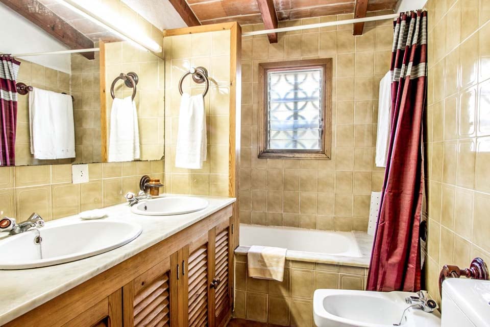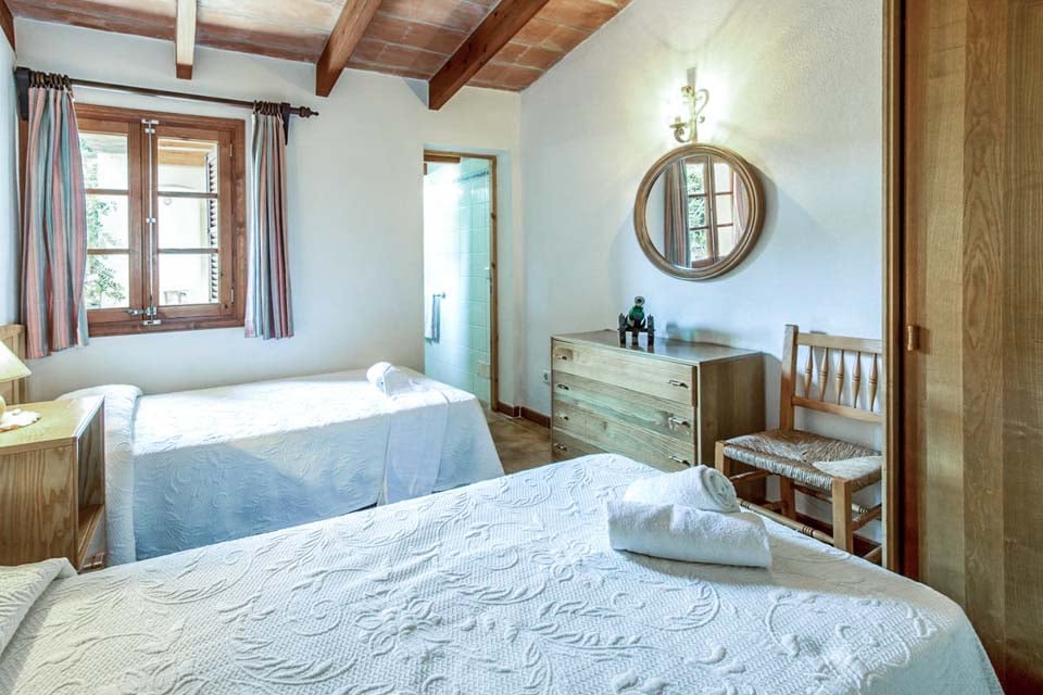 Villa Rosita er et vakkert, tradisjonelt byggverk som ligger i den sjarmerende Pollensa-regionen. Denne villaen i ett plan har et design i gårdshusstil med kule steinvegger og klassiske trebjelker i taket. Gå inn i villaen og bli møtt av lyst og koselig interiør. Salongområdet har komfortable sitteplasser, flatskjerm-TV og hjemmekoselig innredning. På kjøkkenet finner du alt du trenger, et frokostbord og nydelig tradisjonell dekorasjon. Hvert av soverommene er lyse og har de samme bjelketakene som bærer villaens karakter overalt.