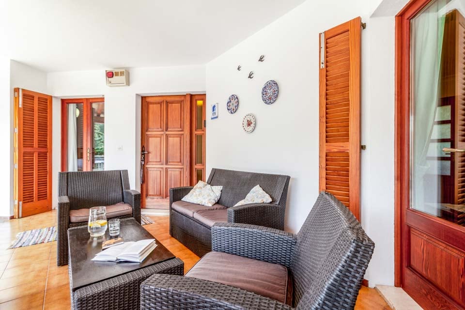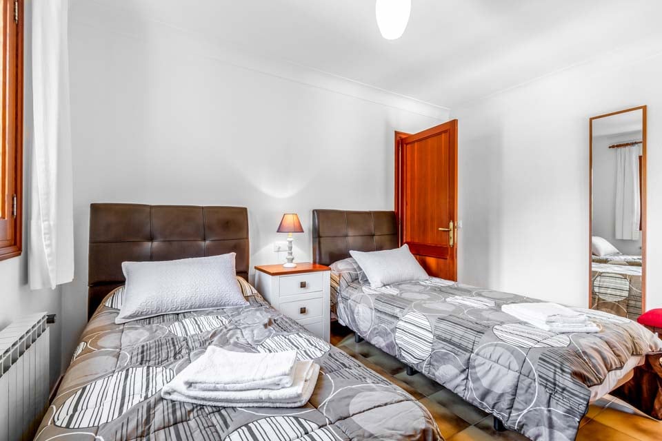 Villa Voltor Cinco har fire soverom; ett med dobbeltseng, ett med to enkeltsenger og to med enkeltsenger, hvor ett av soverommene har utgang til en terrasse med utsikt over den vakre hagen. Den har også 3 bad; 2 med dusj og 1 med badekar.