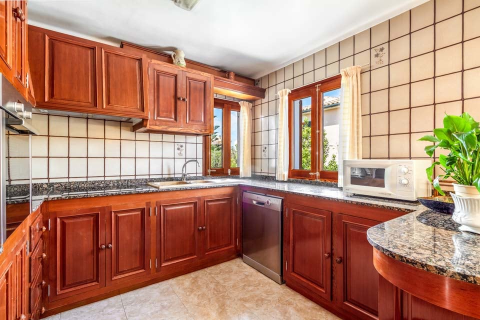 Gå inn i villaen, og du vil bli møtt av en tradisjonell hjemmekoselig følelse med en stue med komfortable sofaer og flatskjerm-TV. Denne fører til spisestuen, og du har også det fullt utstyrte kjøkkenet, perfekt for å prøve deg på å lage mat fra lokal mallorcansk mat.