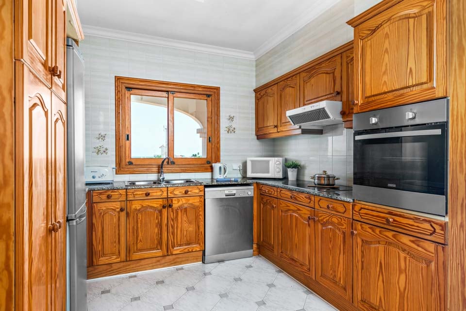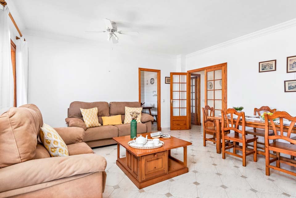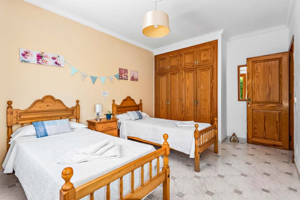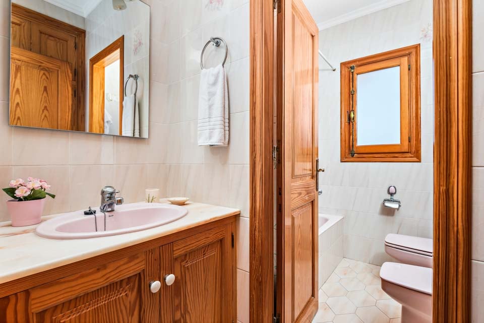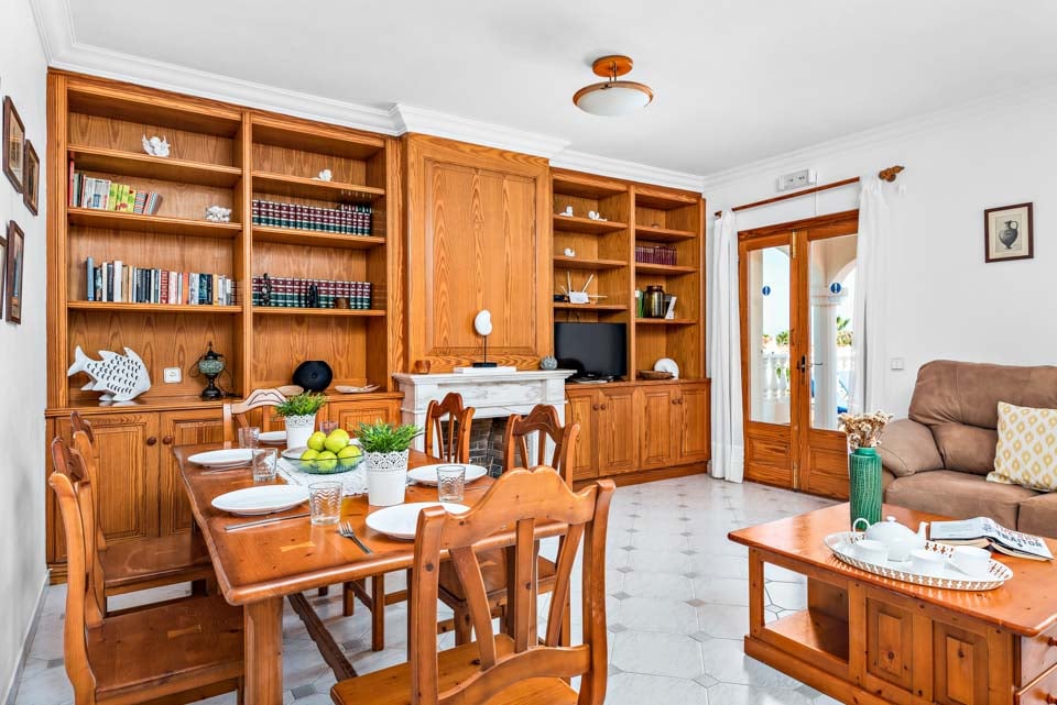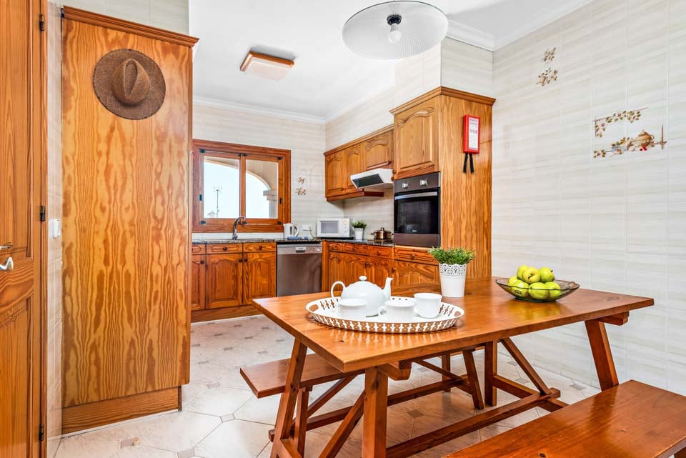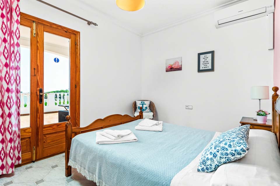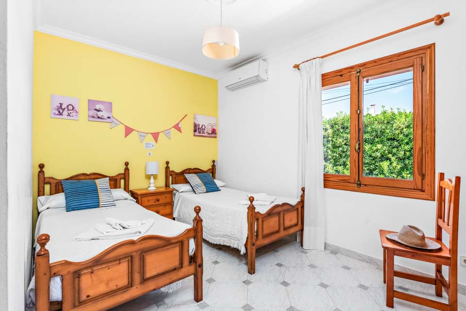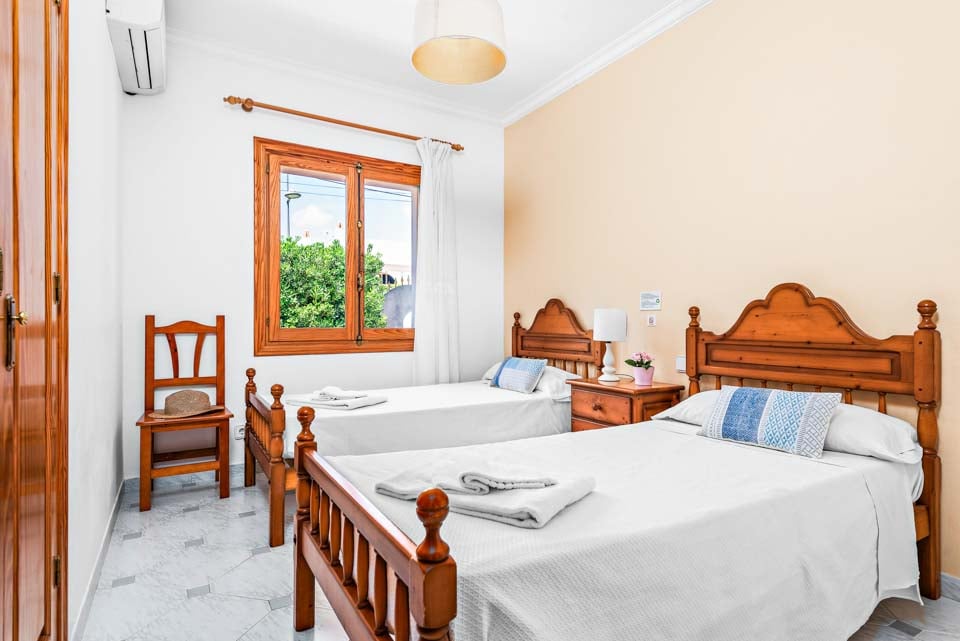 En klassisk og imponerende konstruert spansk finca, Binifortu harmonerer med omgivelsene. Det er et tradisjonelt preg på eksteriøret med myke buer, hvite stukkaturvegger og terrakottafliser. Innvendig reflekterer de hvite veggene solskinnet som strømmer gjennom vinduene, og skaper lyse og luftige oppholdsrom. Ganske minimalistisk i innredningen, er oppholdsrommene designet med en stilig enkelhet, med myke møbler og enkel innredning. Spisebordene i furu matcher de rustikke kjøkkenene i landlig stil, som er pyntet med avanserte hvitevarer. Strekker seg ut over to etasjer, finner du fire soverom å synke ned i etter en travel dag på stranden.