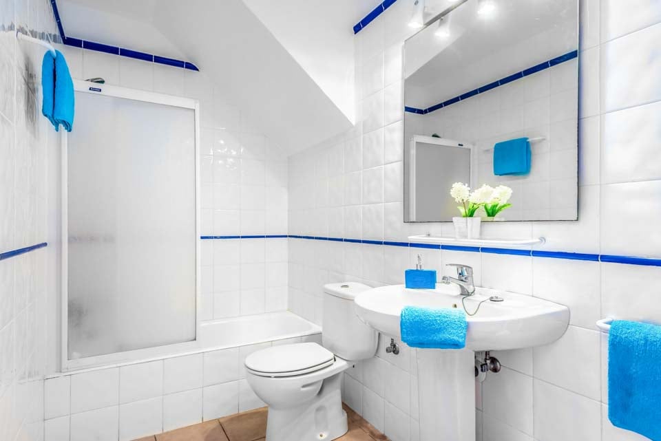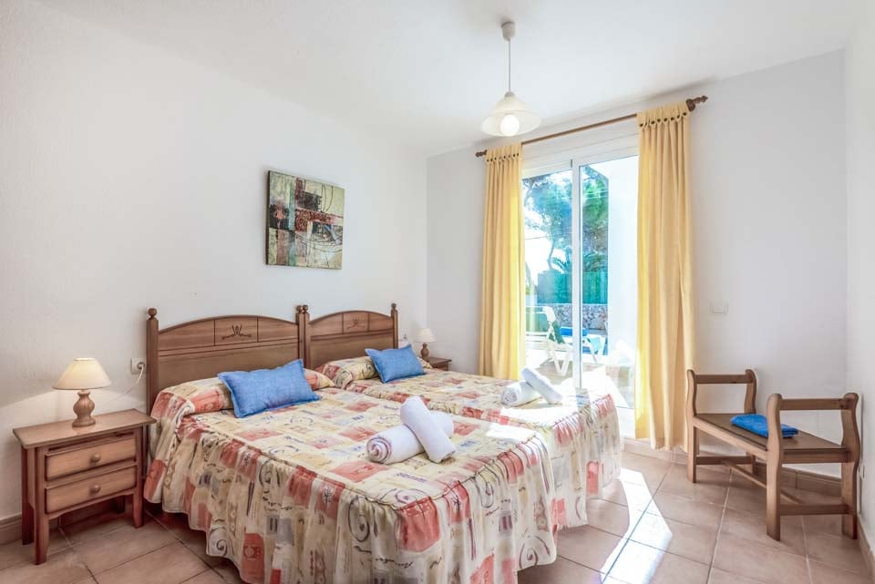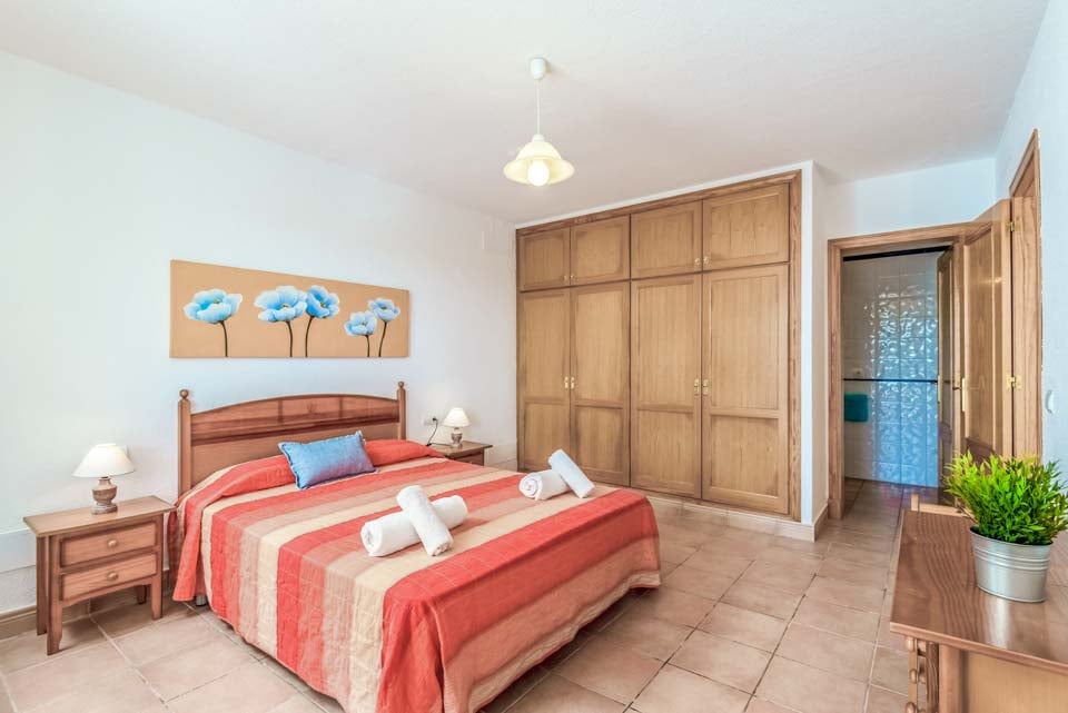 Villaen har tre smakfullt innredede soverom i første etasje, og gir rikelig med overnatting for gjestene. To av disse soverommene har eget bad, noe som sikrer privatliv og komfort. Disse rommene med eget bad har direkte tilgang til bassengterrassen, og tilbyr en sømløs oppholdsopplevelse innendørs og utendørs, slik at gjestene kan nyte middelhavsbrisen. Det tredje soverommet har et tilstøtende dusjrom som sikrer ekstra bekvemmelighet for alle beboere.