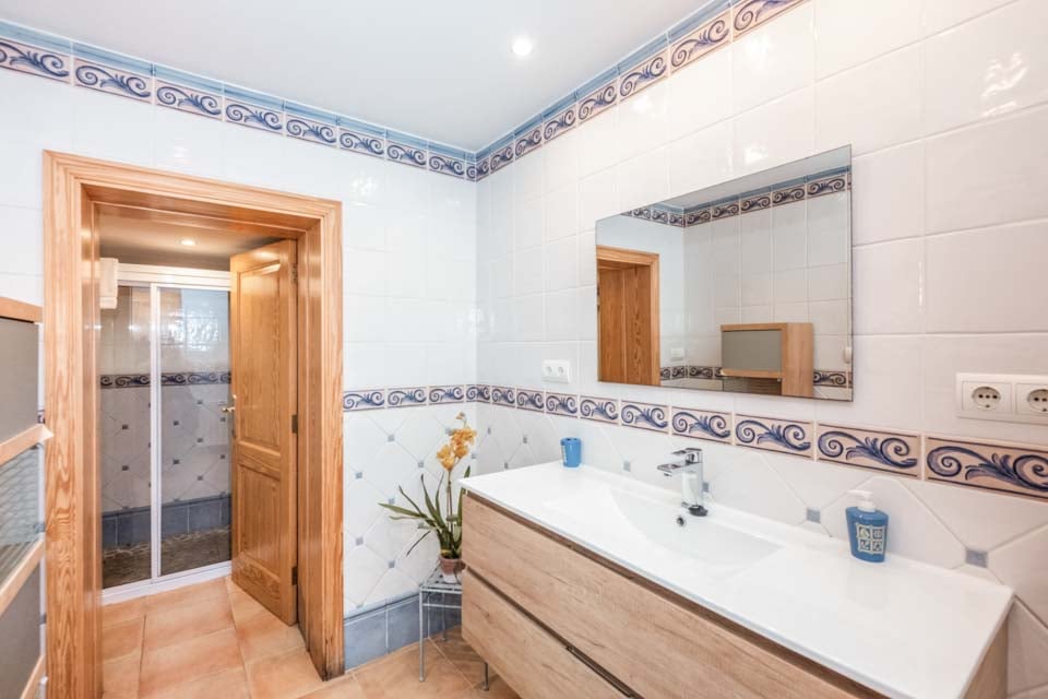 For å komme til villaen er det en sti som er 200 cm bred. Inngangsdøren har en bredde på 80 cm, mens døren til terrassen også er 80 cm bred. Villaen består av to separate oppholdsrom. Fra første etasje kan du komme deg ned til bassengkanten med ett lite trinn fra det skyggefulle området. Fra første etasje er det 18 trinn ned til bassengkanten. Terrassen er åpen og flislagt. Selve bassenget har trinntilgang. Alle soverommene har en dørbredde på 80 cm, mens alle badene har en dørbredde på 80 cm. Døren inn til kjøkken/spisestue er 90 cm bred, og døren inn til stuen er også 200 cm bred. Det er 18 trinn til annekset i første etasje, og en sti som er 120 cm bred. *Vær oppmerksom på at selv om vi har gjort vårt ytterste for å sikre at informasjonen som gis er nøyaktig, kan det forekomme feil. Hvis du trenger mer spesifikk informasjon om villaen, ikke nøl med å kontakte oss.