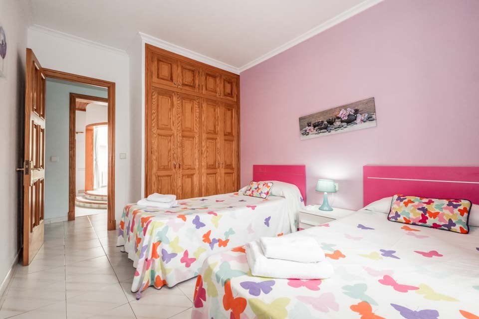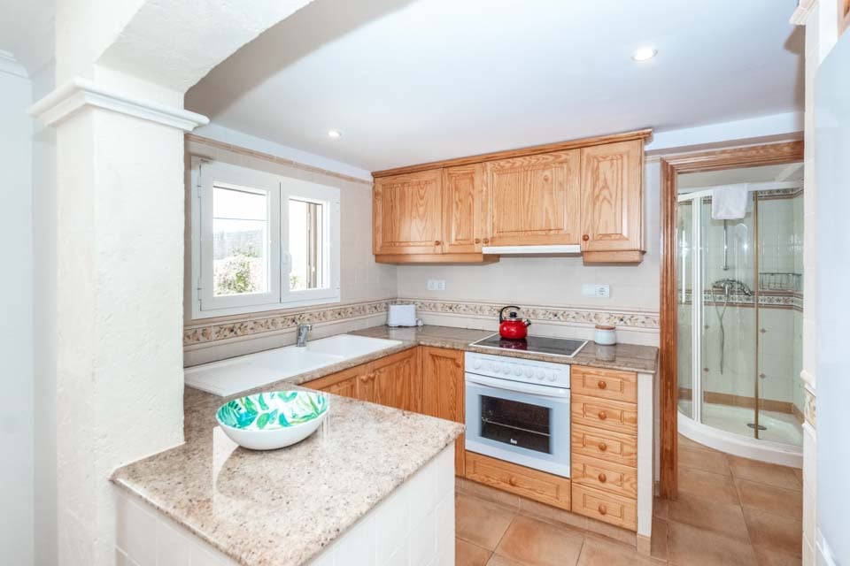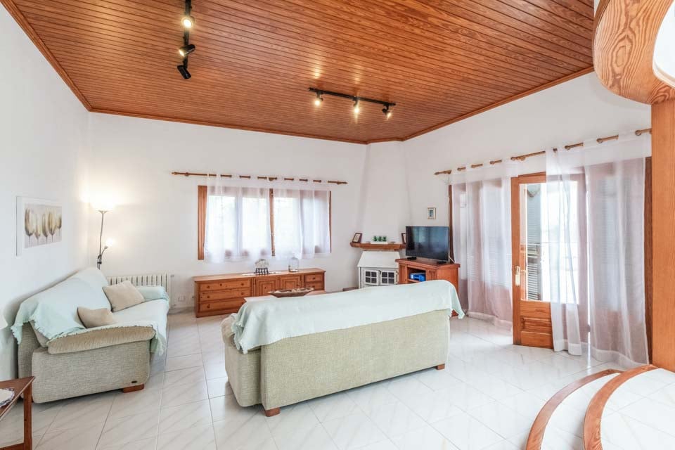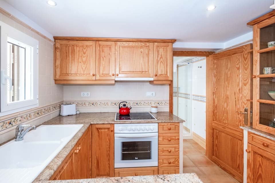 Området i underetasjen har 2 soverom og 2 bad, mens leiligheten i andre etasje har 3 soverom og 2 bad. Den ovenpå terrassen har fantastisk havutsikt, og gir en pittoresk setting for avslapning og nytelse, i tillegg er det en stor overbygd terrasse i første etasje. Hver terrasse er utstyrt med sitt eget spisebord og stoler som tilbyr ulike kroker for ultimat avslapning.