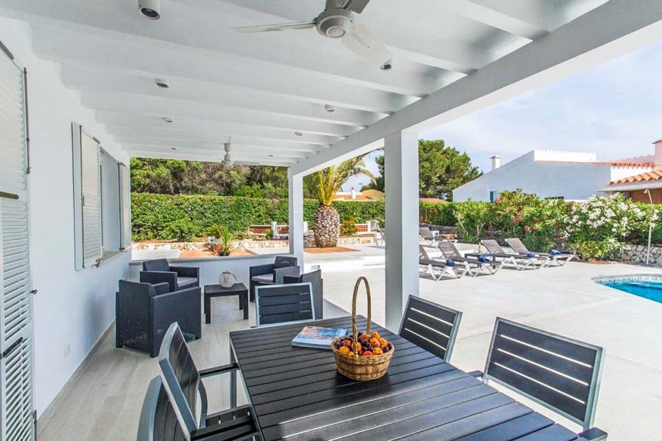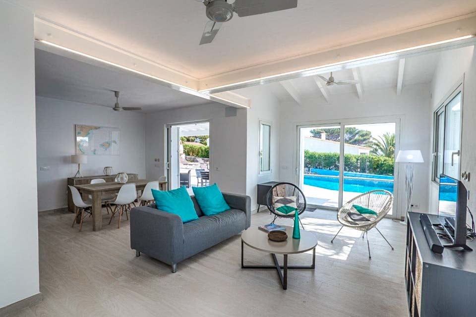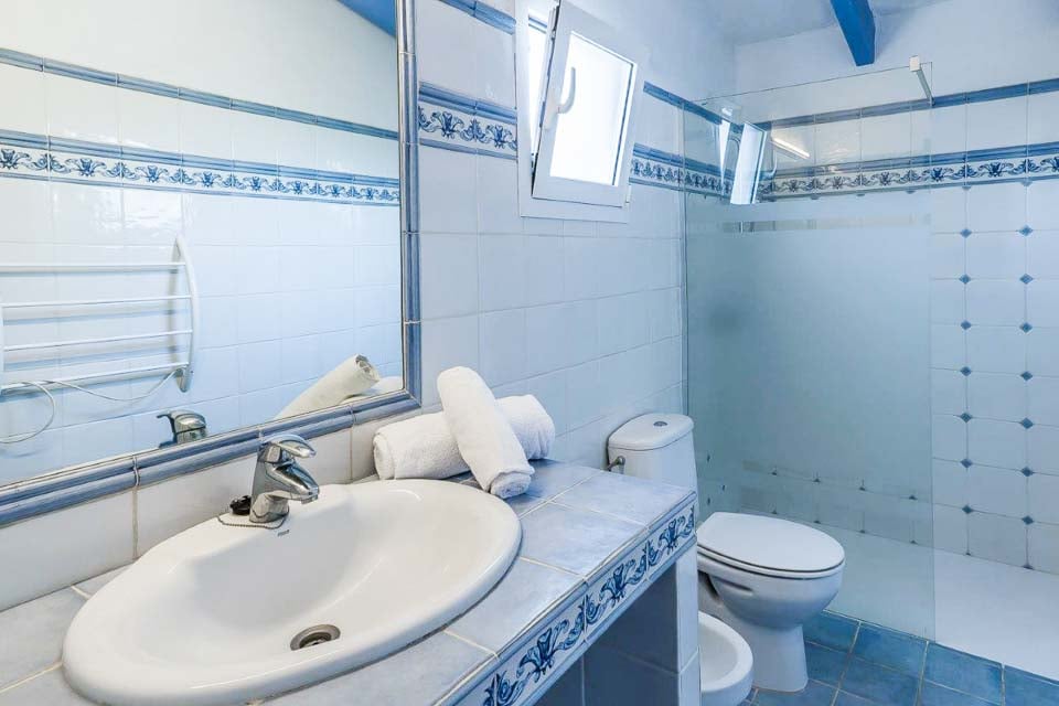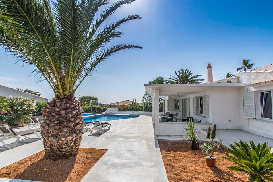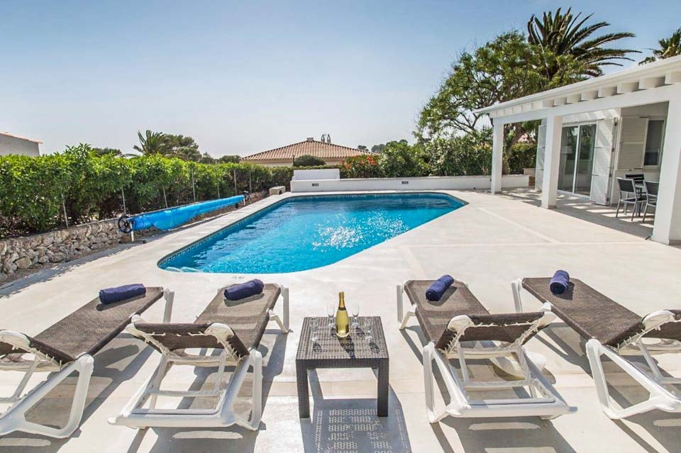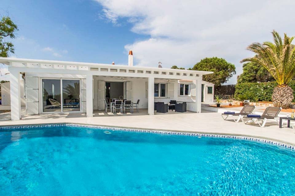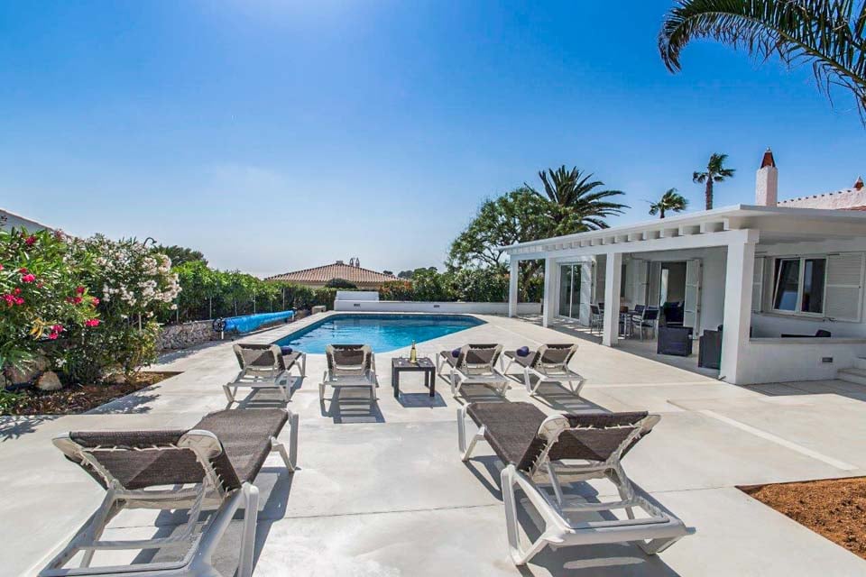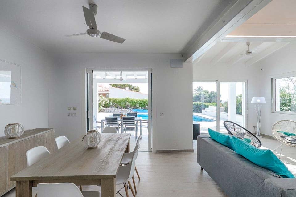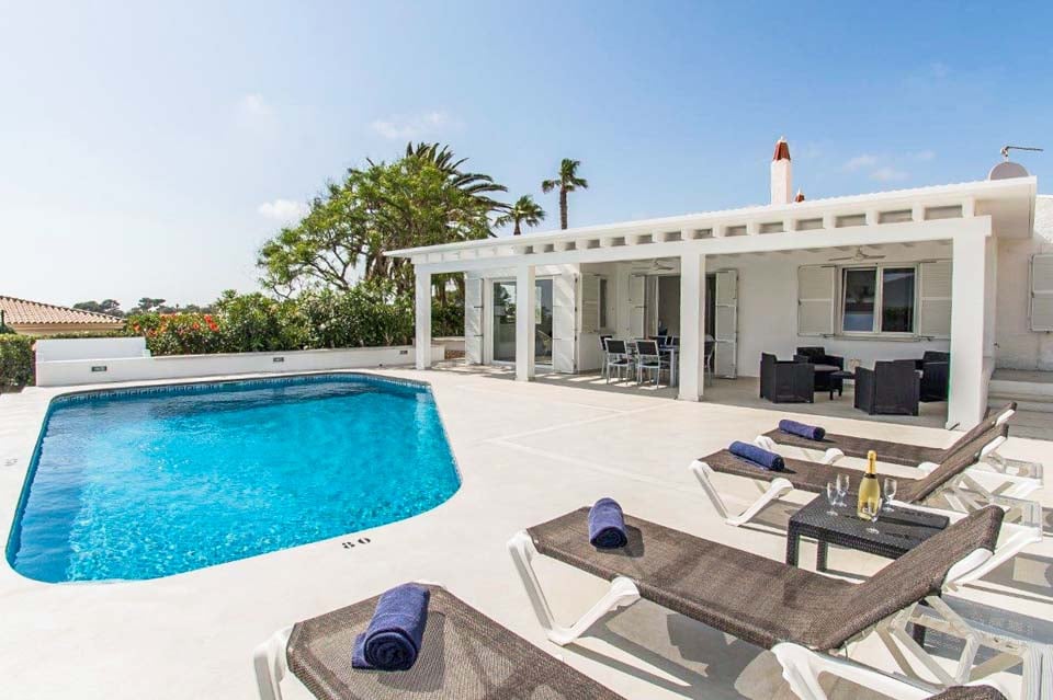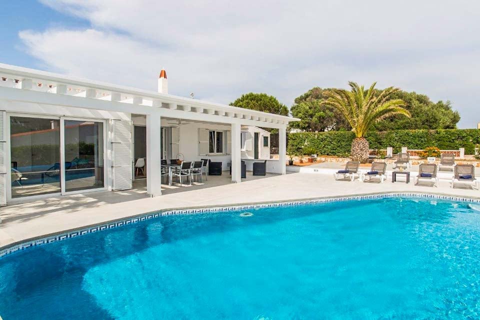 Villa Eva ligger i en sjarmerende gate i den pittoreske fiskerlandsbyen Binibeca, og er en perle i et rolig hjørne av Menorca. Du er bare en kort spasertur unna de hvitsprutede gatene, med en labyrint av sjarmerende, brosteinsbelagte gater som fører til en livlig havn full av guppende fiskebåter. Det er et vell av restauranter og bakerier som tilbyr alt fra deilige paellaer og fersk sjømat til luftige kaker og syltetøyfylte bakverk. Hovedtorget er yrende om dagen med gavebutikker og blir levende om natten med lokale vinbarer og tavernaer. Med utsikt over en ganske lun vik med myk sand og milde bølger, ta en cocktail på den rustikke strandbaren som ligger i vannkanten. Det er bare en tjue-minutters kjøretur til den travle hovedstaden Mahon, hvor du kan absorbere den travle atmosfæren på en restaurant ved vannet eller spasere rundt i de historiefylte gatene.