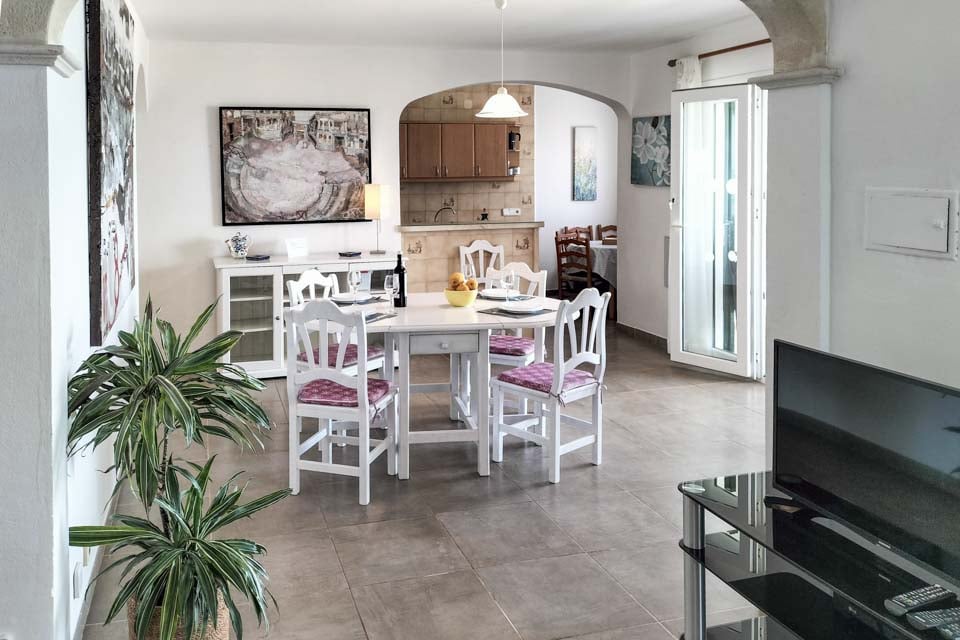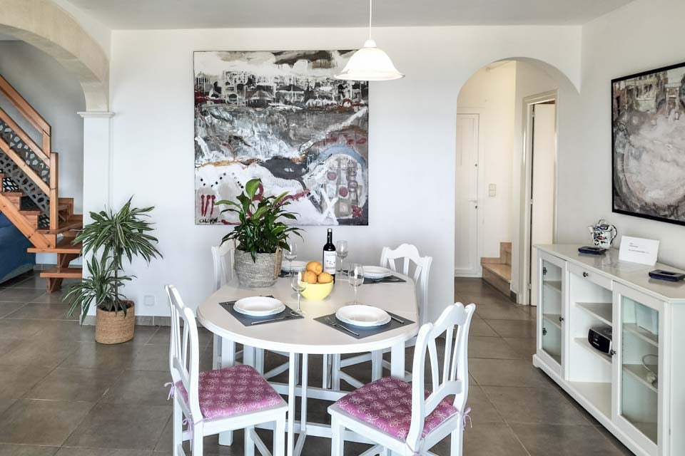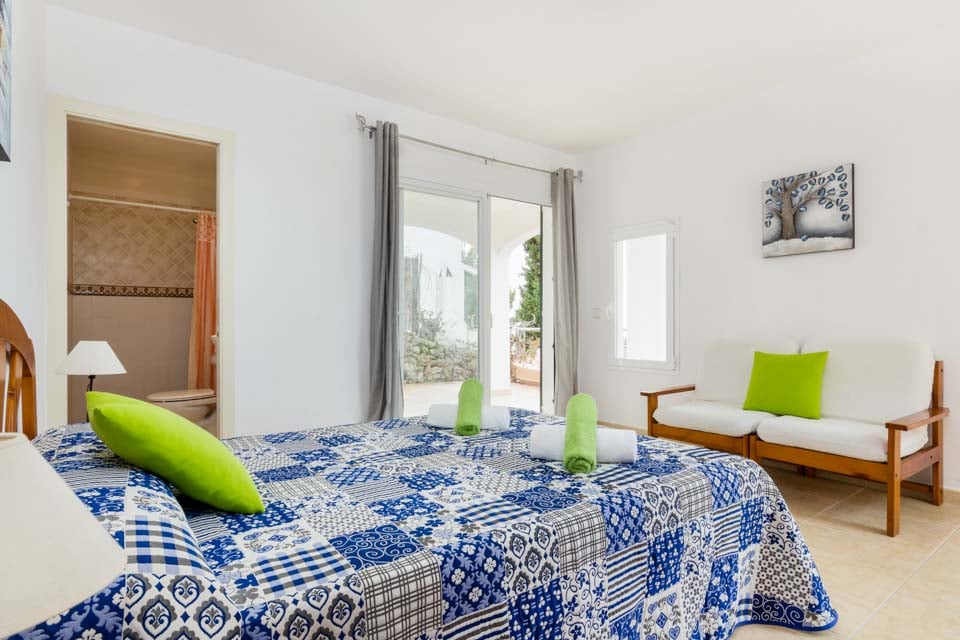 Gå inn i villaområdet gjennom en buet port og boligkvarteret er delt over tre nivåer. Et spesielt høydepunkt i andre etasje er det innbydende boblebadet, som pumper ut forfriskende vann via en fontene. Den grensende veggen er av glass, så du kan boble avgårde med panoramautsikt over Middelhavet. Andre etasje har et anneks som rommer et soverom, eget dusjrom og balkong. Fra hovedstuen har du tilgang til et utendørs spiseområde, som lar deg spise måltidene dine med utsikt over den fantastiske utsikten.