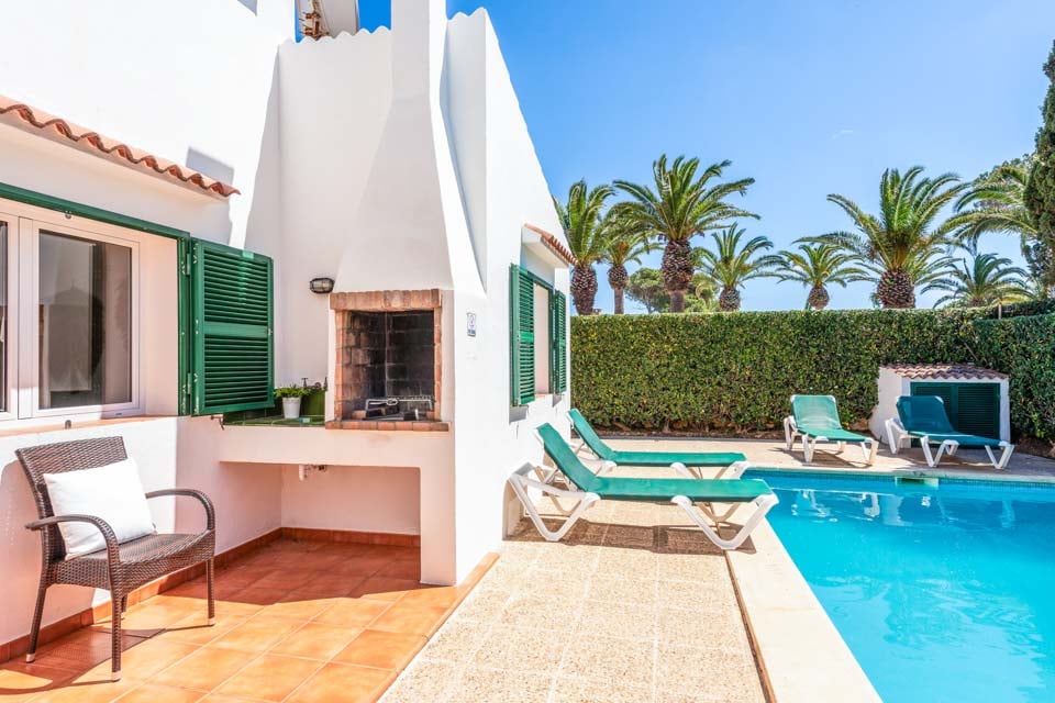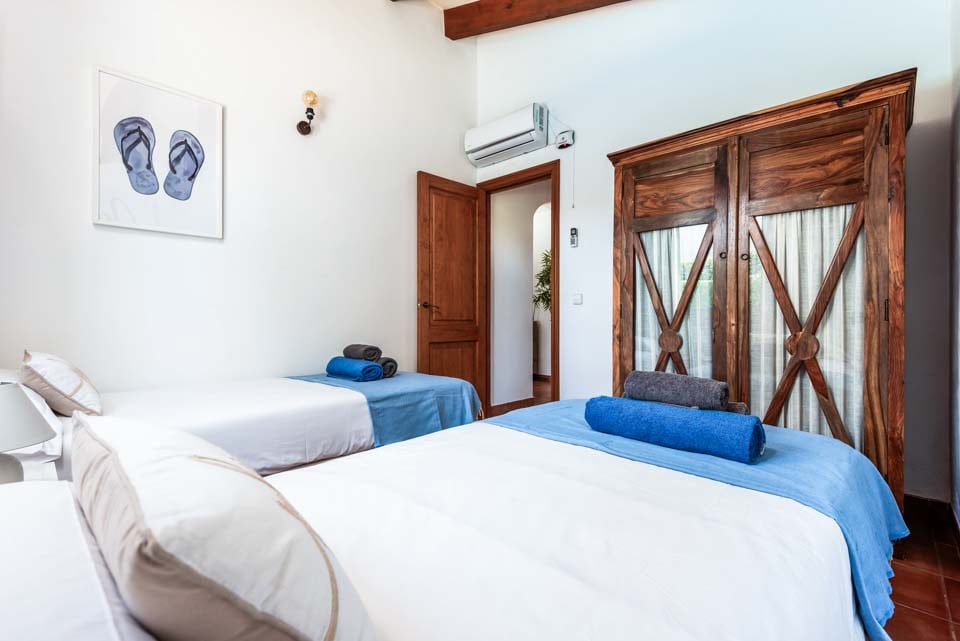 En dag ved bassenget er best å tilbringe på Villa Juanita Blanes, da et 8 meter langt basseng med romerske trapper er ideelt for å kjøle deg ned fra middagssolen. Uteservering ligger under en skyggefull terrasse, mens en mursteinsbygget BBQ er ideell for å grille en lunsj eller et kveldsmåltid under stjernene. Inne finner vi en komfortabel stue, komplett med et innendørs spisebord og en flatskjerm-TV. Det velstore kjøkkenet er fullt utstyrt med alle de nyeste hvitevarene som oppvaskmaskin, mikrobølgeovn og kokeplate. Et soverom med 2 enkeltsenger og separat dusjrom fullfører første etasje, mens ovenpå finner vi de resterende to soverommene, et tomannsrom med balkong ved bassenget og et dobbeltrom. Begge deler familiebad.