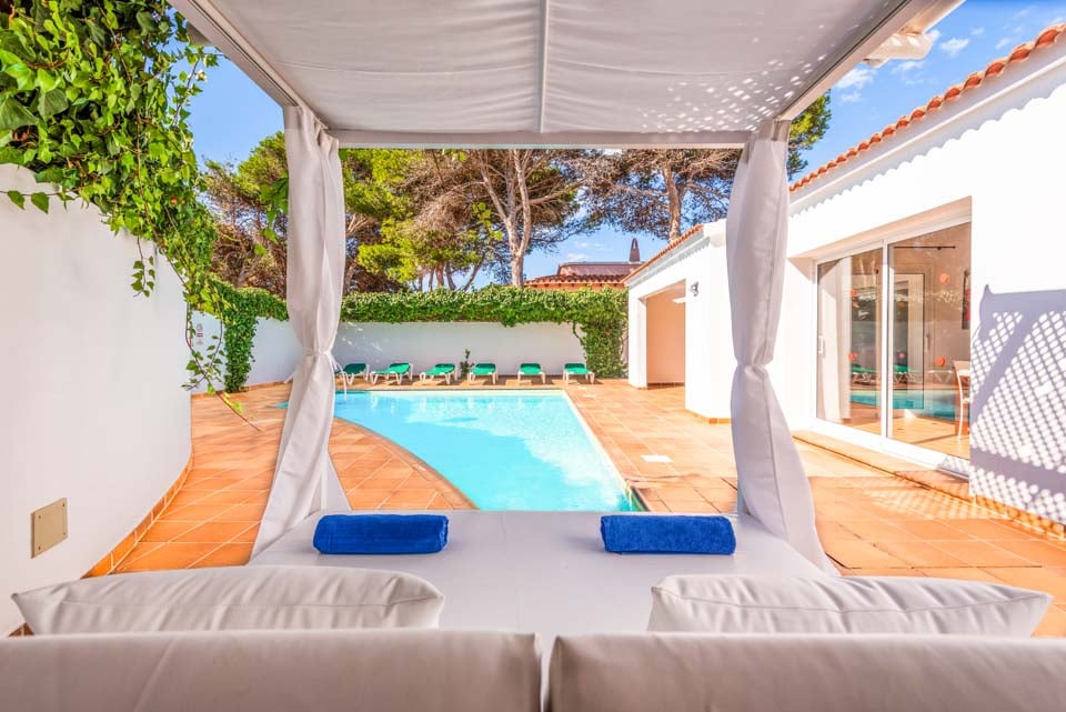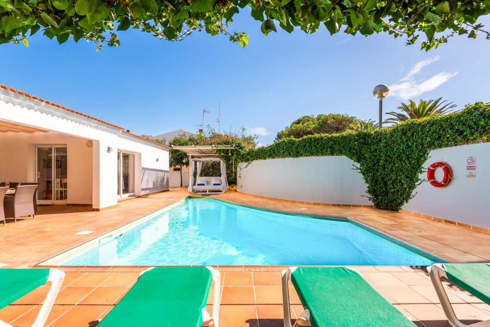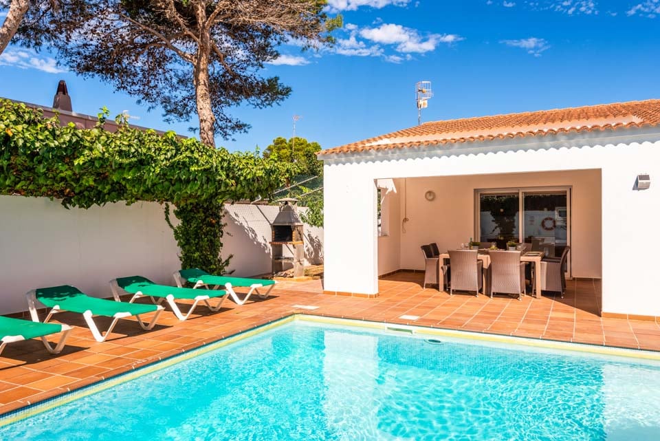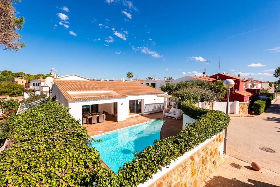 Et steinkast unna den vakre marinaen i Cala en Bosch, er denne moderne villaen et fantastisk valg for din Menorcan-ferie. Fullt av restauranter som tilbyr internasjonal mat, barer med levende musikk og et utvalg av butikker å spasere rundt, er dette definitivt stedet å være. To sandstrender tilbyr morsomme dager ute, båtturer til nærliggende bukter og enkel tilgang til Ciutadella ... dette er virkelig en ypperlig beliggenhet.