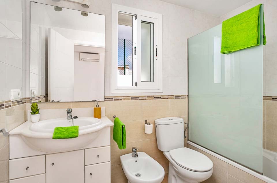 For å komme til villaen er det en 120 cm bred sti langs ett trinn. Inngangsdøren har en bredde på 83 cm, mens døren til terrassen er 85 cm bred. Terrassen er åpen, flat og flislagt. Det er små lepper ned fra terrassedørene ut på terrassen. Selve bassenget har trinntilgang. Dette er en eiendom i første etasje. Alle soverommene har en dørbredde på 70 cm, mens alle badene har en dørbredde på 70 cm. Døren inn til kjøkken/spisestue er 80 cm bred, og døren inn til stuen er også 80 cm bred. *Vær oppmerksom på at selv om vi har gjort vårt ytterste for å sikre at informasjonen som gis er nøyaktig, kan det forekomme feil. Hvis du trenger mer spesifikk informasjon om villaen, ikke nøl med å kontakte oss.