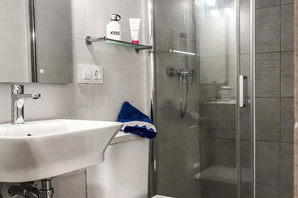 Bassengstørrelse: 7,3m x 3,5m Bassengdybde: 1,1m - 1,8m, dusj ved bassengkanten, tilgang via trapper