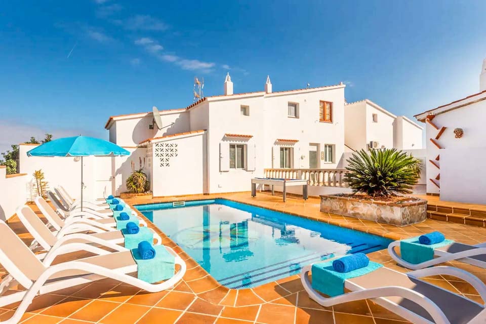 Denne villaen kan skilte med en av de beste beliggenhetene i Arenal d'en Castell, og er den ultimate avslappende tilfluktsstedet på Menorcas ville nordkyst. Fra det øyeblikket du ankommer, vil du bli overvunnet av gamle hvitkalkede stukkaturvegger, terrakotta-flistak og hvite skodder, som utstråler autentisk spansk sjarm. Støttet av fristende utsikt over det glitrende Middelhavet, vil det være vanskelig å forlate dette lille stykke spansk paradis.