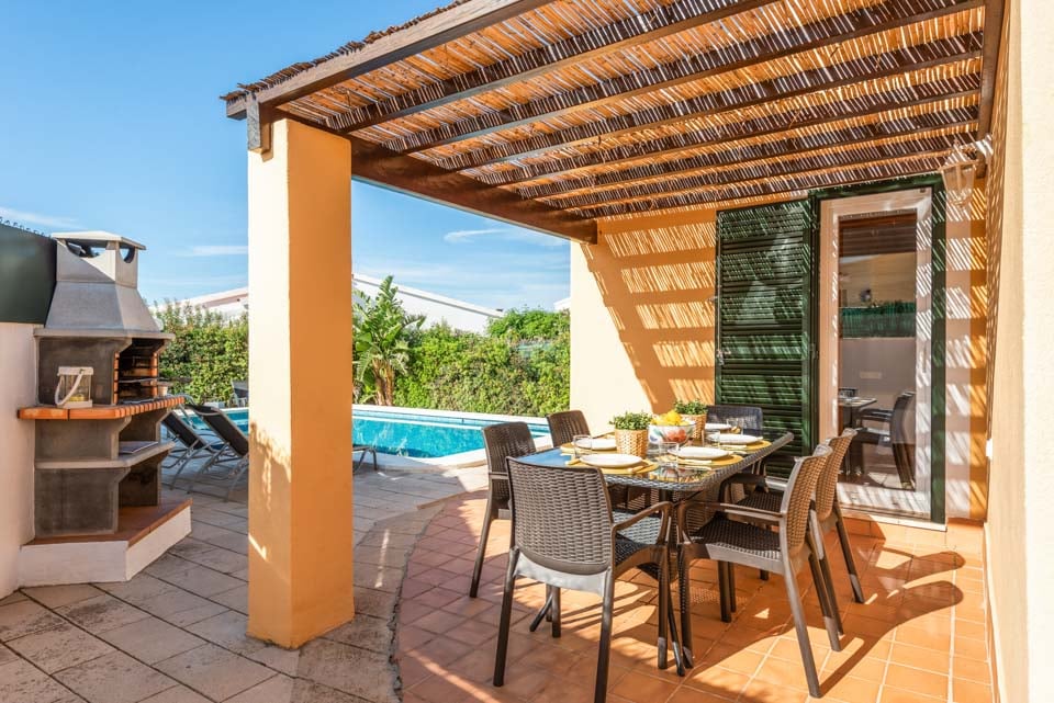 Vora de la Mar ligger i det sjarmerende boligområdet Cap d'Artrutx, og er en drømmevilla i et av de mest populære hjørnene av Menorca. Bare en femten minutters spasertur unna ligger det elskede feriestedet Cala'n Bosch, kjent for sin buktende sandstrand og pittoreske marina. Fra uterestauranter til shopping i stappfulle gater, gir det en uforglemmelig, velfylt familieferie. Strekke seg lenger unna er Ciutadella, proppfull av fascinerende historie, en rik kultur og en pulserende shoppingscene. For alt du trenger, er det et stort supermarked bare fem minutters gange unna, samt et busstopp for en raskere rute inn til byen.