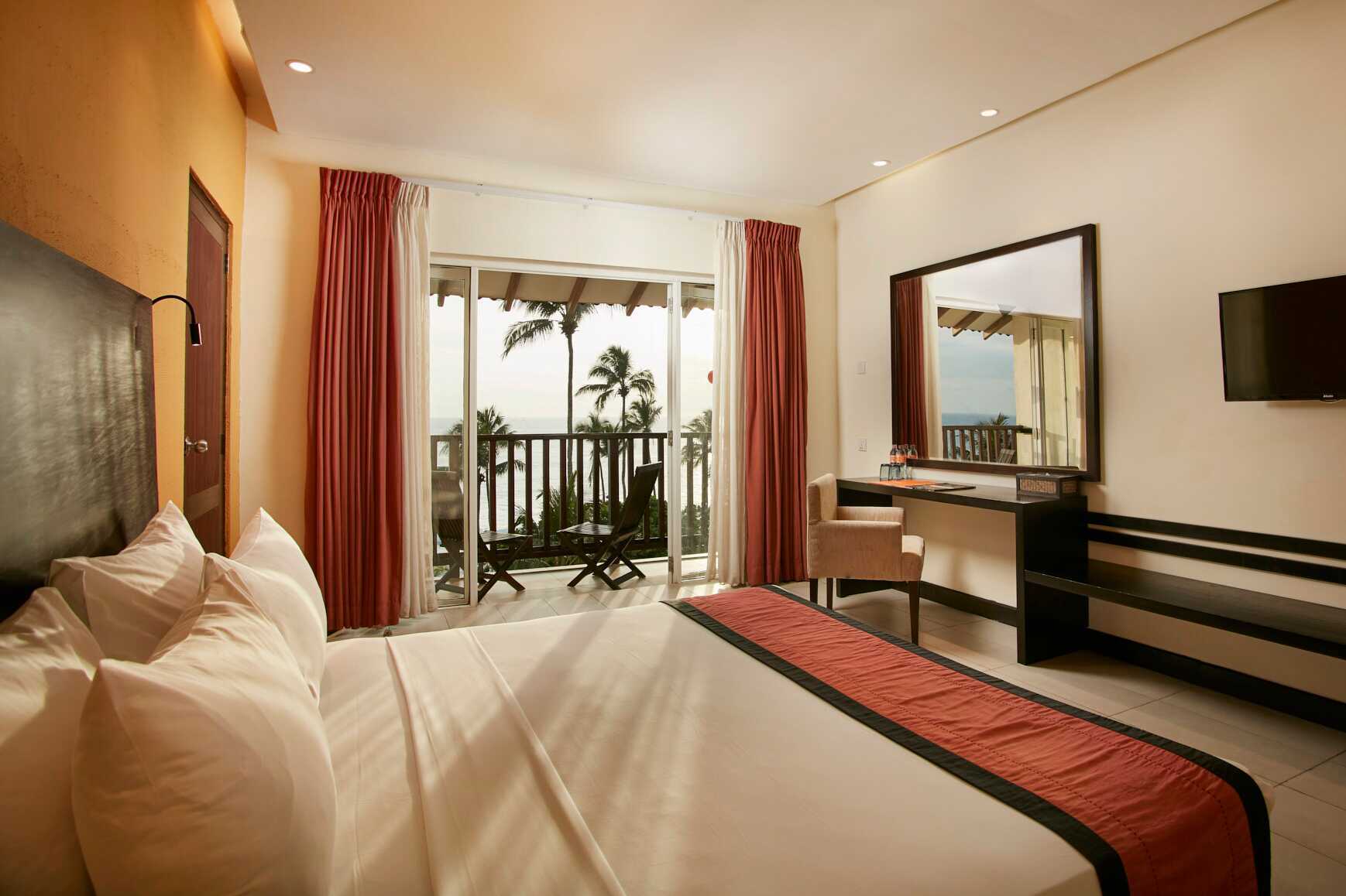 Deluxerom med balkong eller terrasse. En dobbeltseng eller to enkeltsenger. Mulig med ekstraseng i enkeltseng eller i ordinære senger. Wifi, luftkondisjonering og safe inkludert. Minibar. TV. Hårføner. Dusj og wc. Rengjøring 7 ggr/uke.