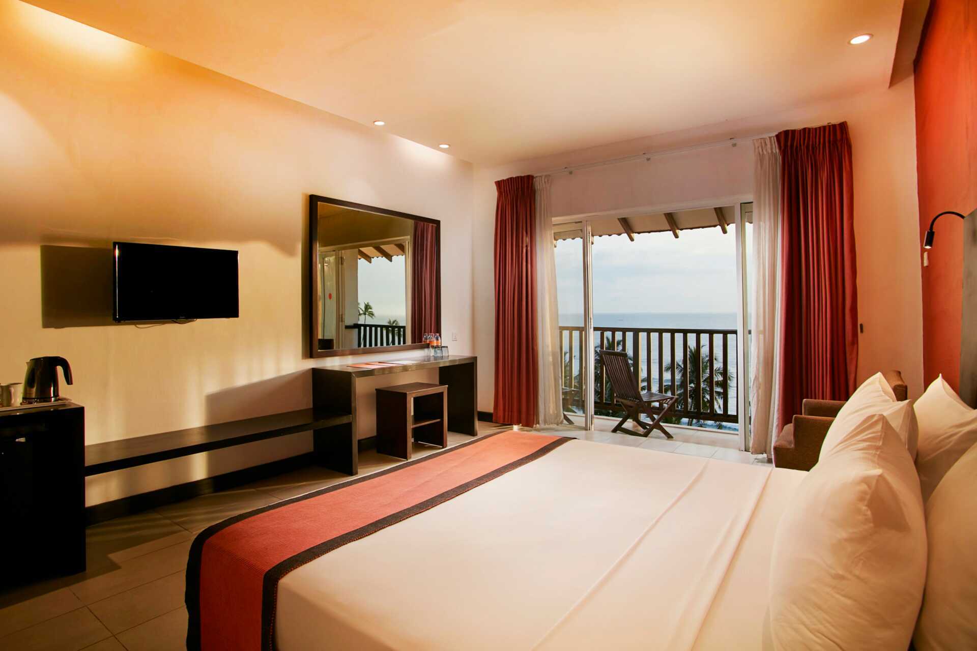 Deluxerom med balkong eller terrasse. En dobbeltseng eller to enkeltsenger. Mulig med ekstraseng i enkeltseng eller i ordinære senger. Wifi, luftkondisjonering og safe inkludert. Minibar. TV. Hårføner. Dusj og wc. Rengjøring 7 ggr/uke.